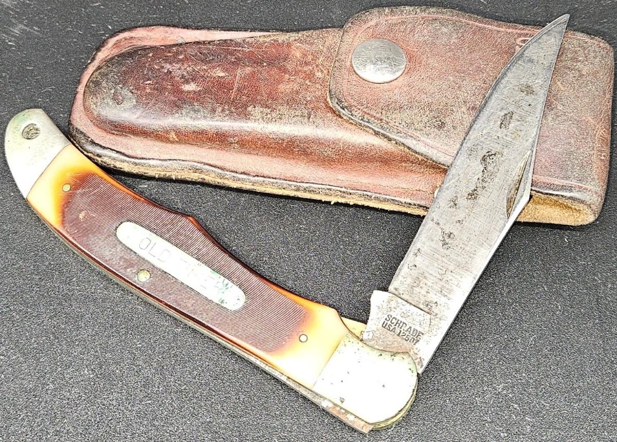 Vintage Schrade Old Timer With Sheath Folding Pocket Knife - (T1)