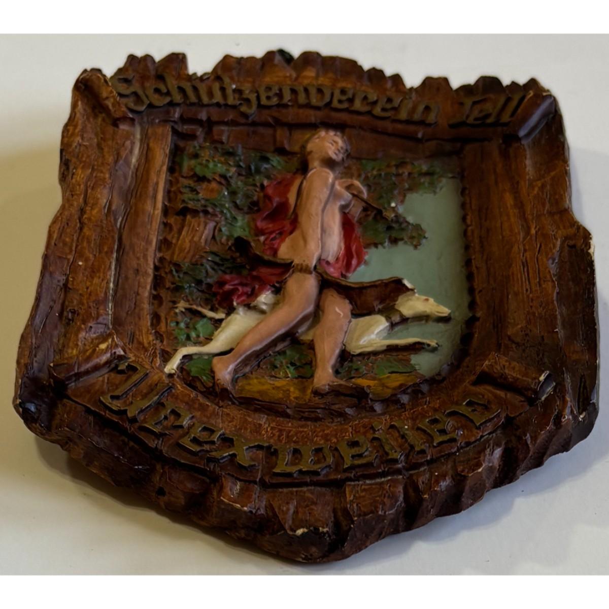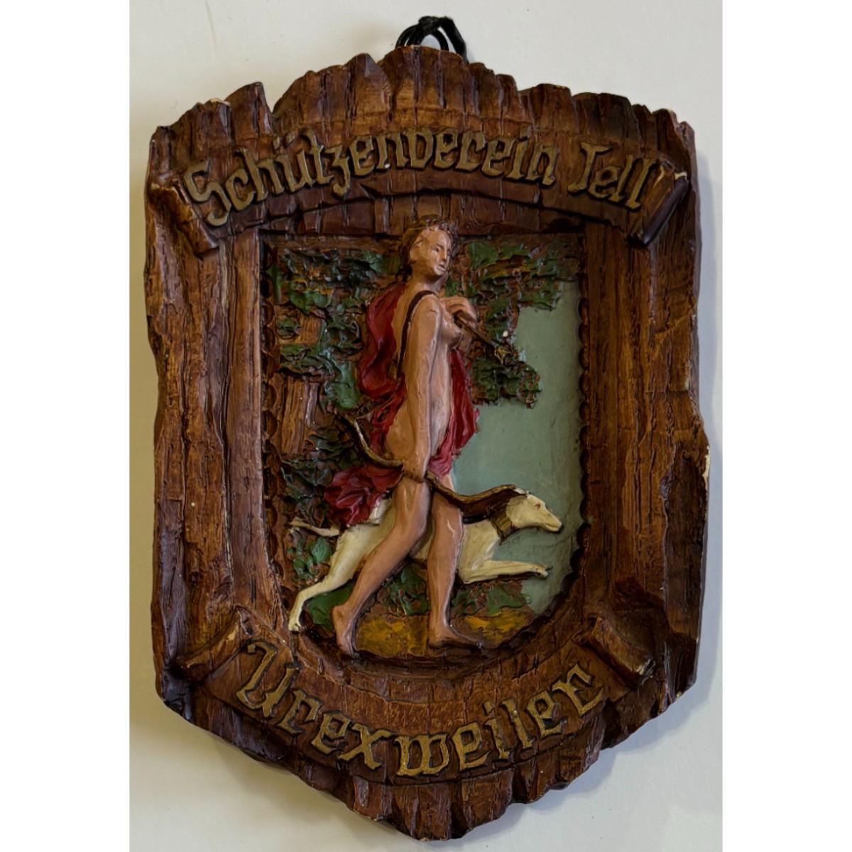 Vintage Schuetzenverein Tell Urexweiler Wood Plaque Nude Marksmen Shooting Club