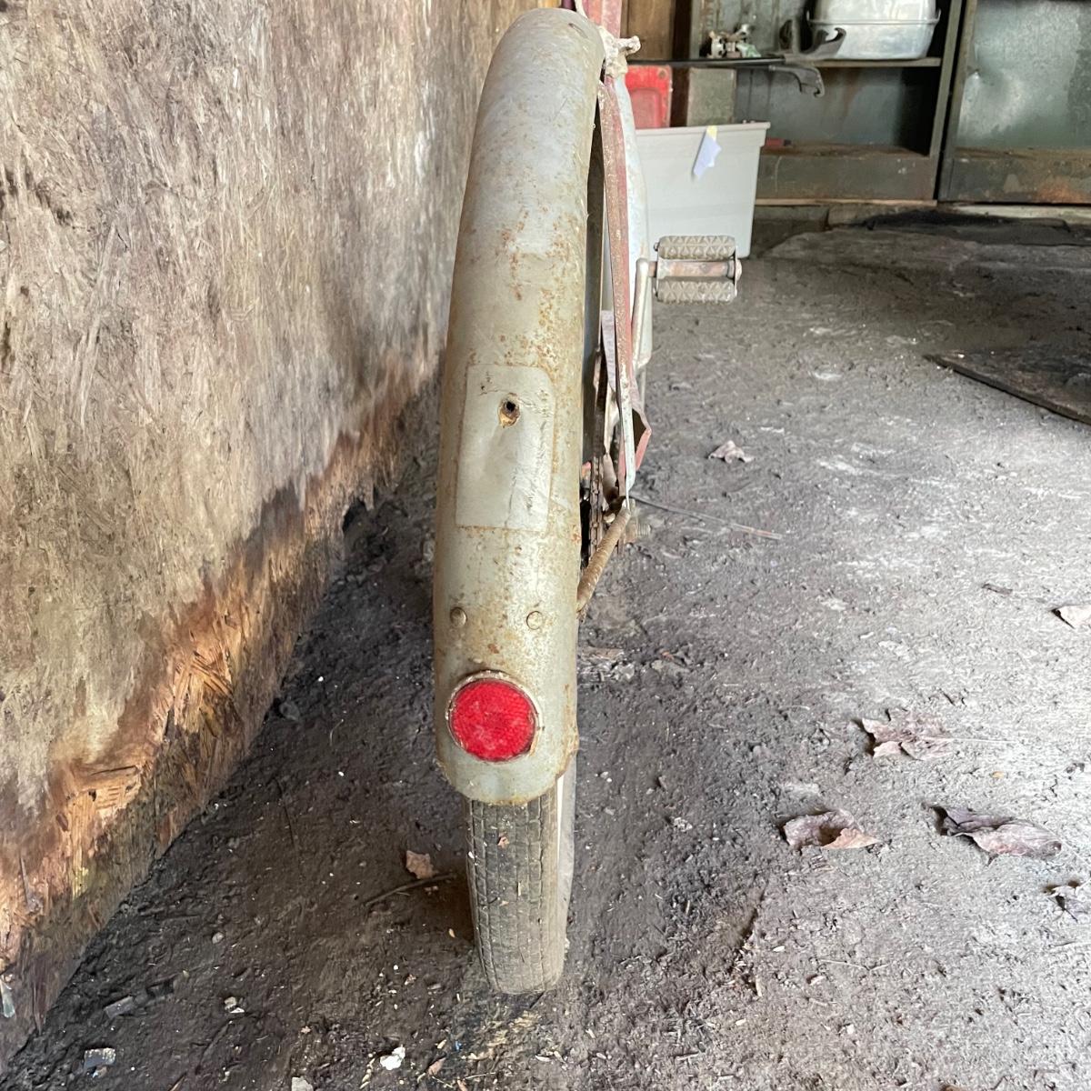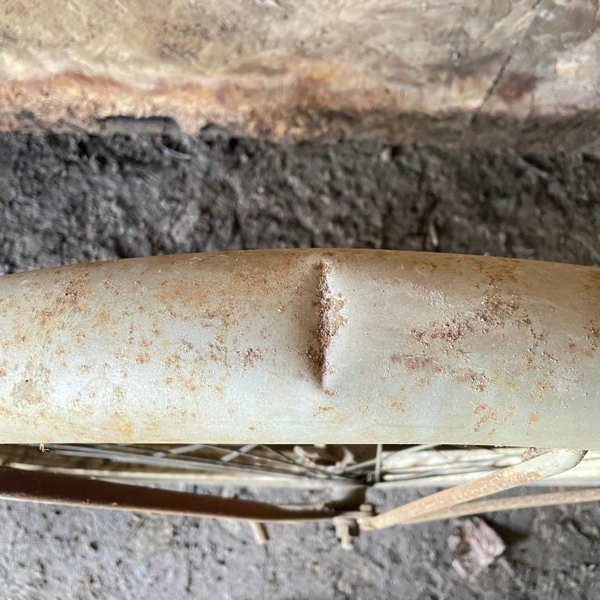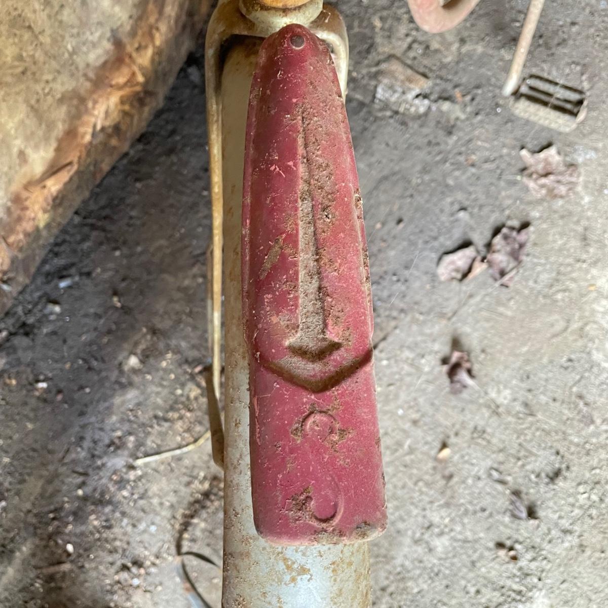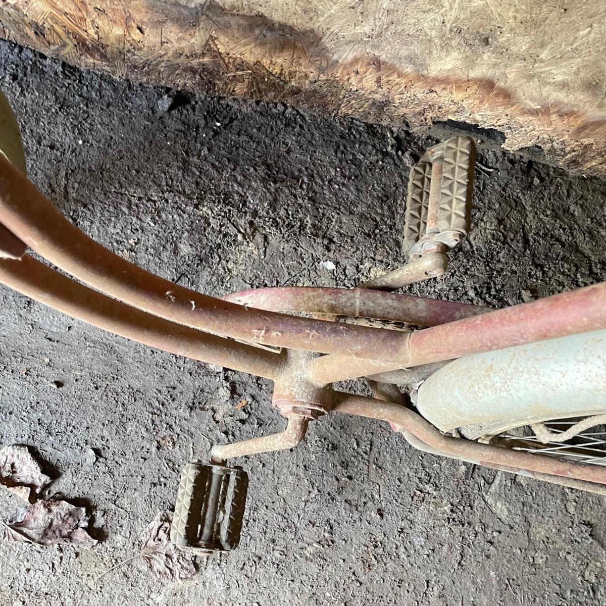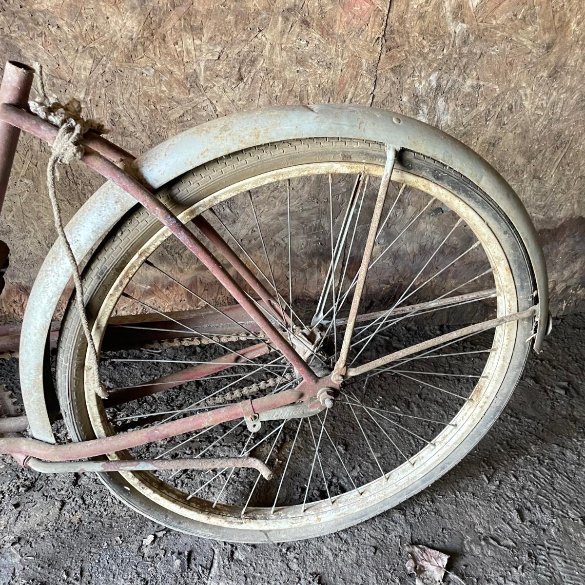Vintage Schwinn metal bike with reddish paint. Bike is missing it’s chair and needs a lot of work to get it back on working condition, including two new tires and seat. The pedals move the chain, but we were unable to test how well it works. The handlebars and fenders show rust. This piece would be great decor with some cleaning, or a classic ride if refurbished. Bike measures 68” long and the handlebars are 40” high. See images. Local pick up only.