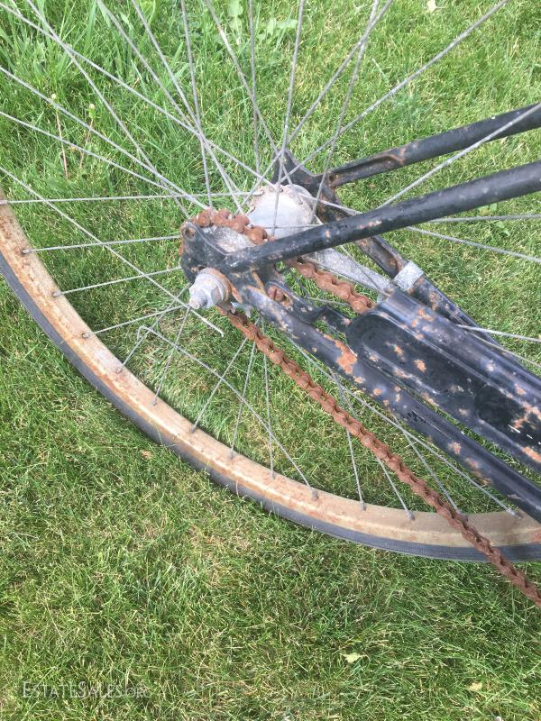 In good condition crank turns needs restoration tires are shot surface rust on bike. Some spokes loose on back wheel.