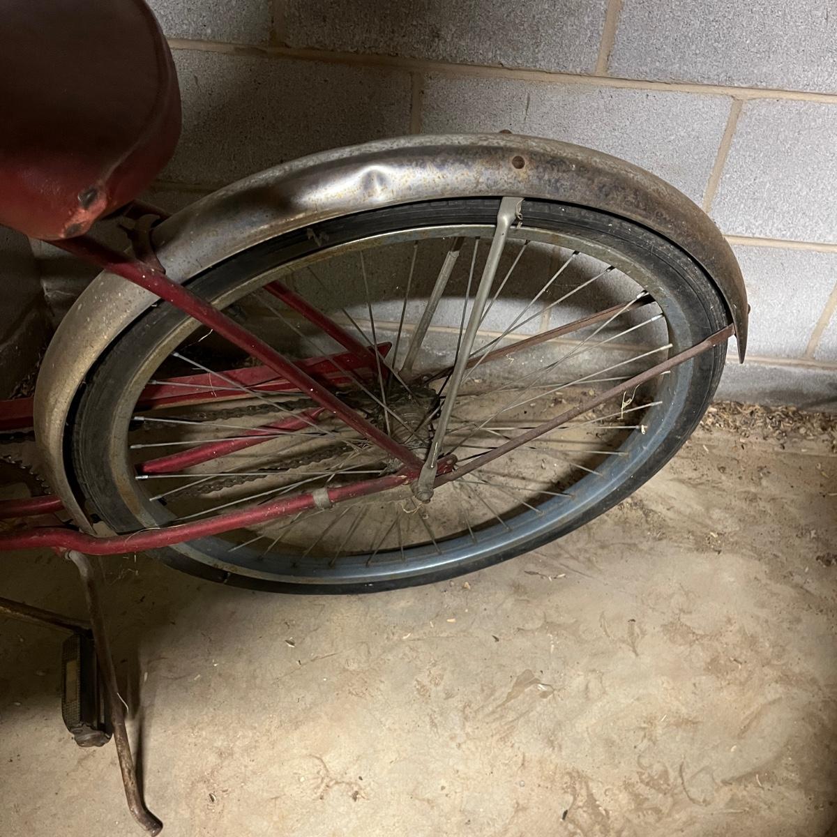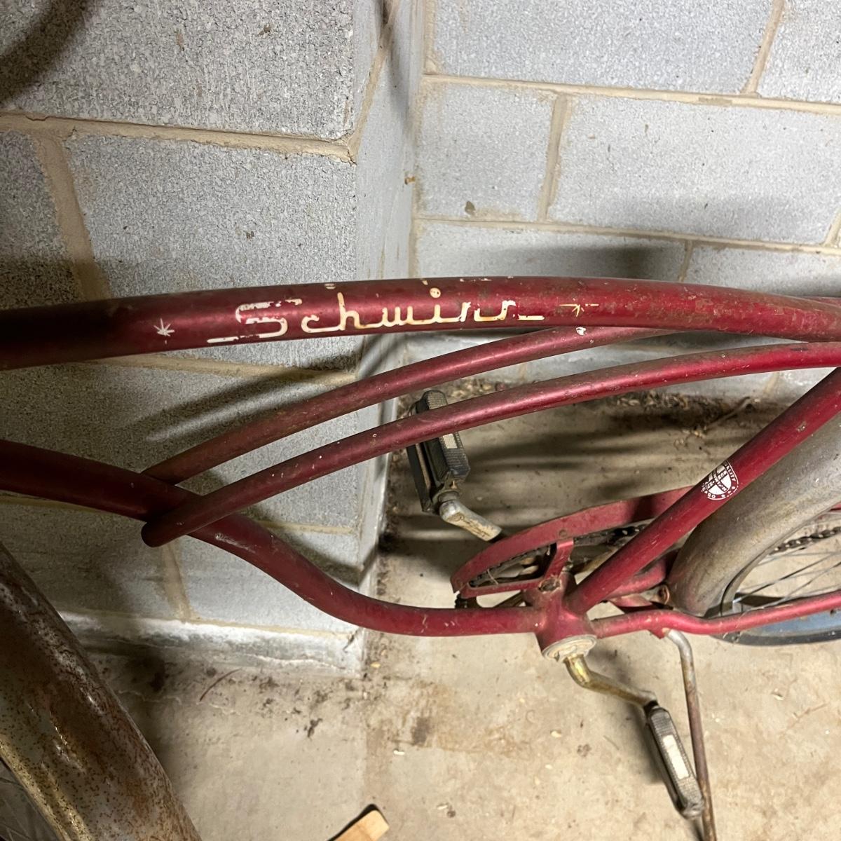 Lot includes a vintage Schwinn single speed bicycle with coaster brakes. Both tires are flat and cracked.