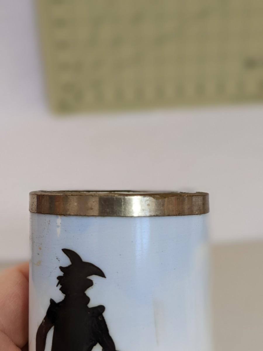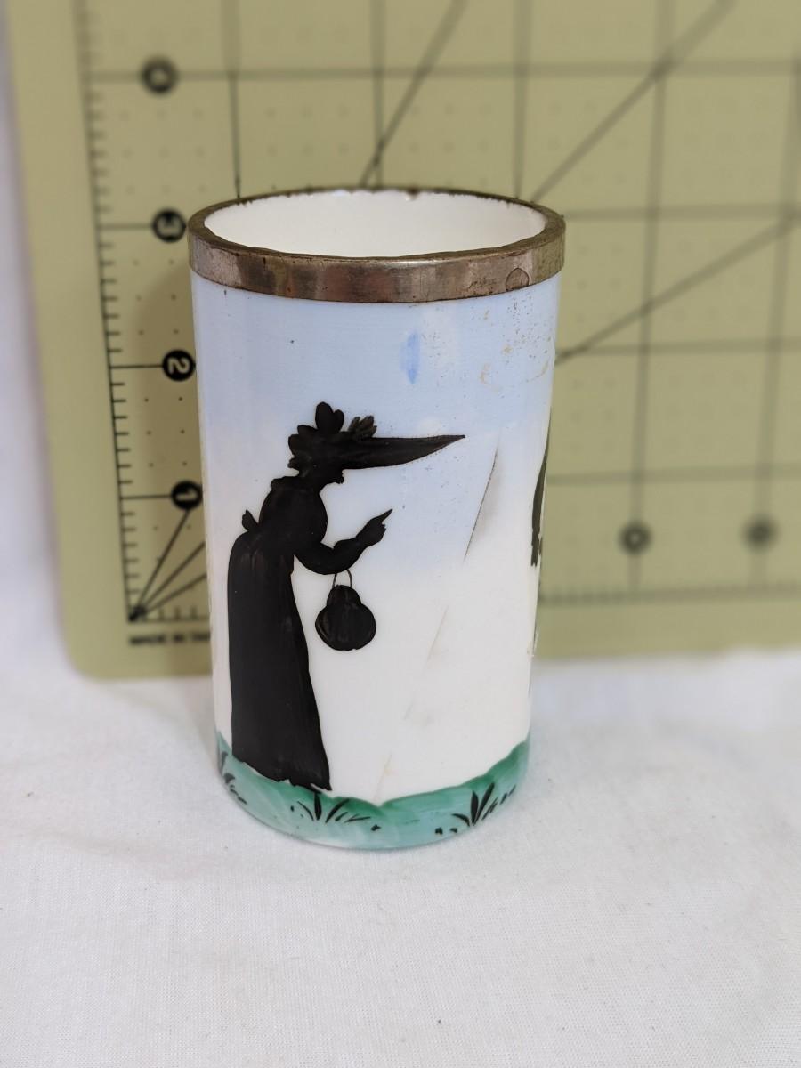 Vintage Scolding Wife Thick Porcelain Cup with Sterling Silver Rim