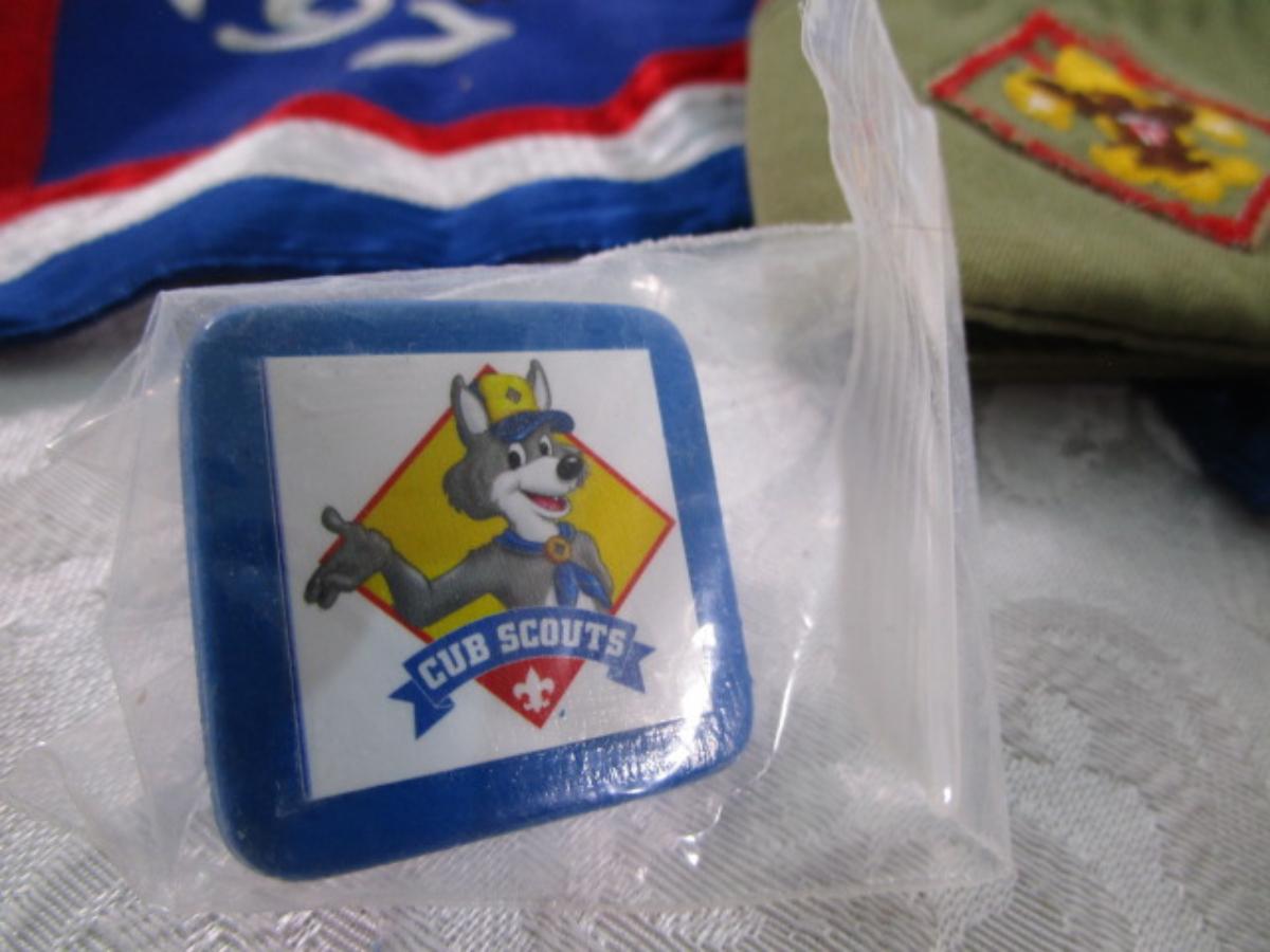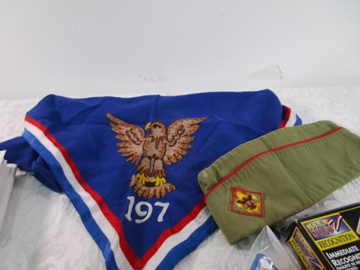 Vintage scout hat, embroidered neckerchief, & Scout Supplies