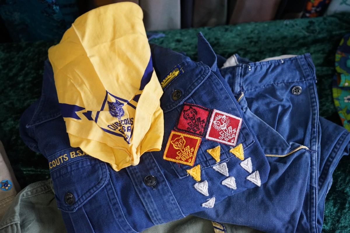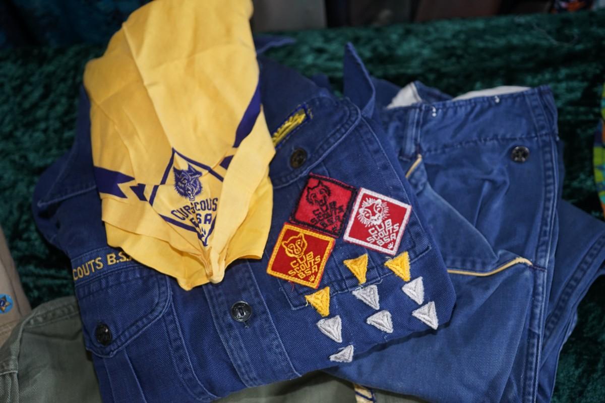 the Cub scout uniform is slightly worn but still in good condition. no tears or holes.