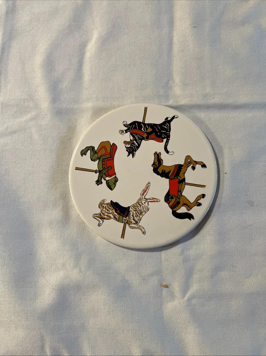 Vintage Screen Craft Carousel Animal Ceramic Kitchen Trivet Wall Hanging