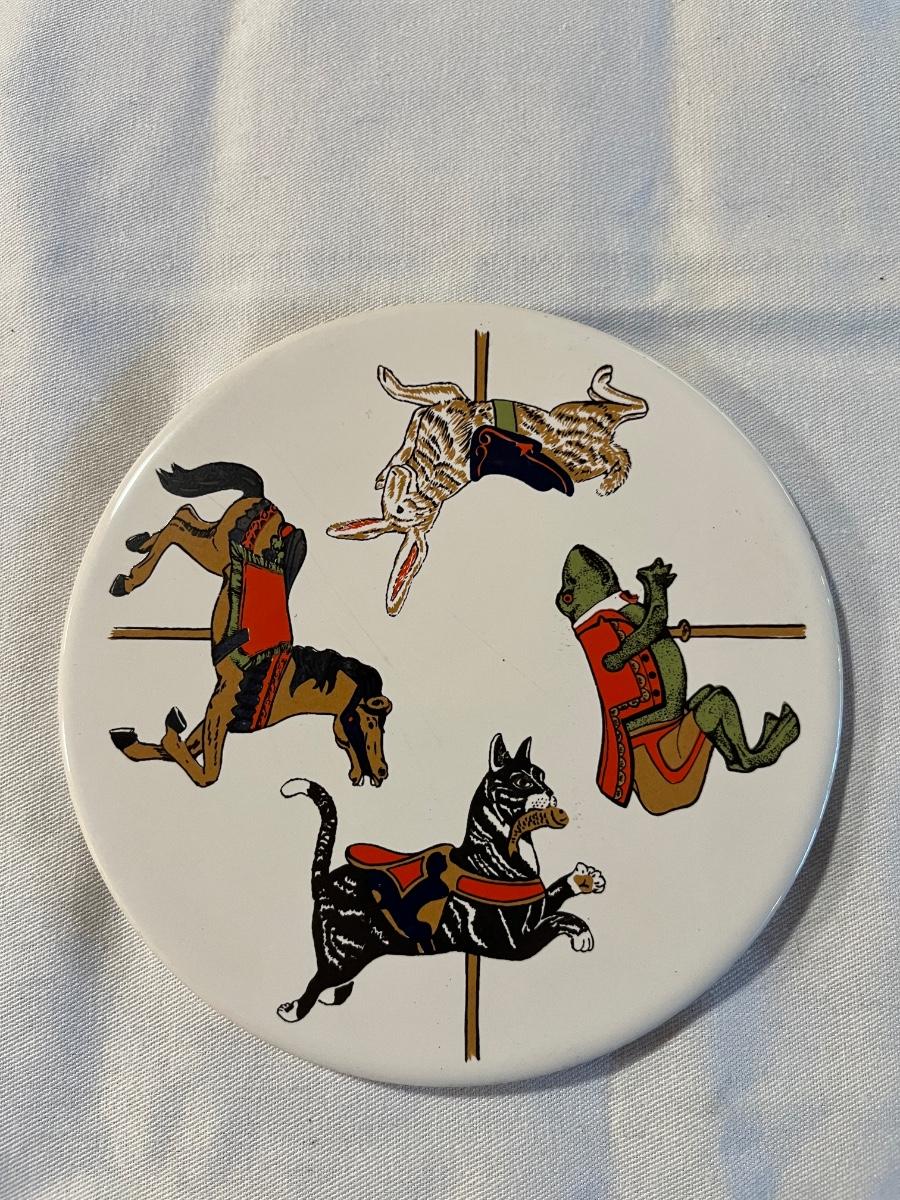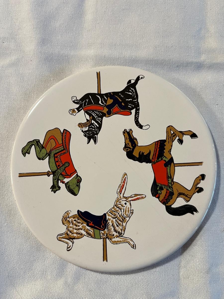 Vintage Screen Craft Carousel Animal Ceramic Kitchen Trivet Wall Hanging Made in Japan
