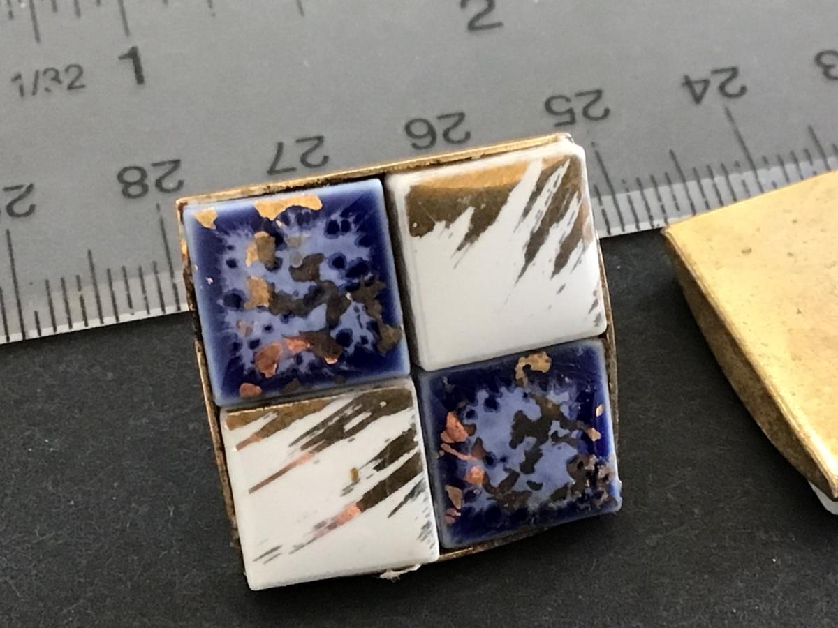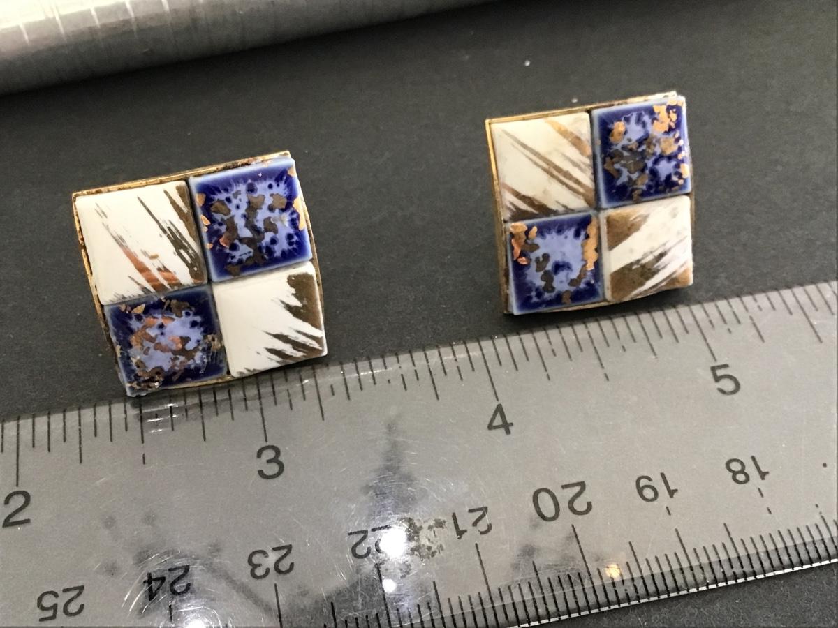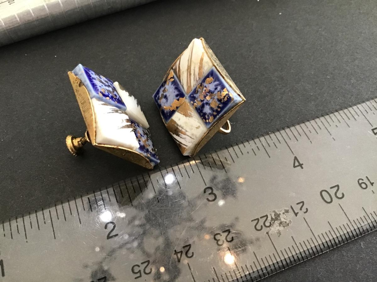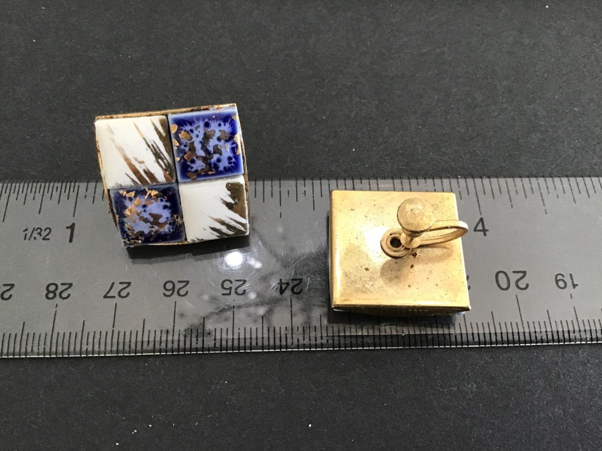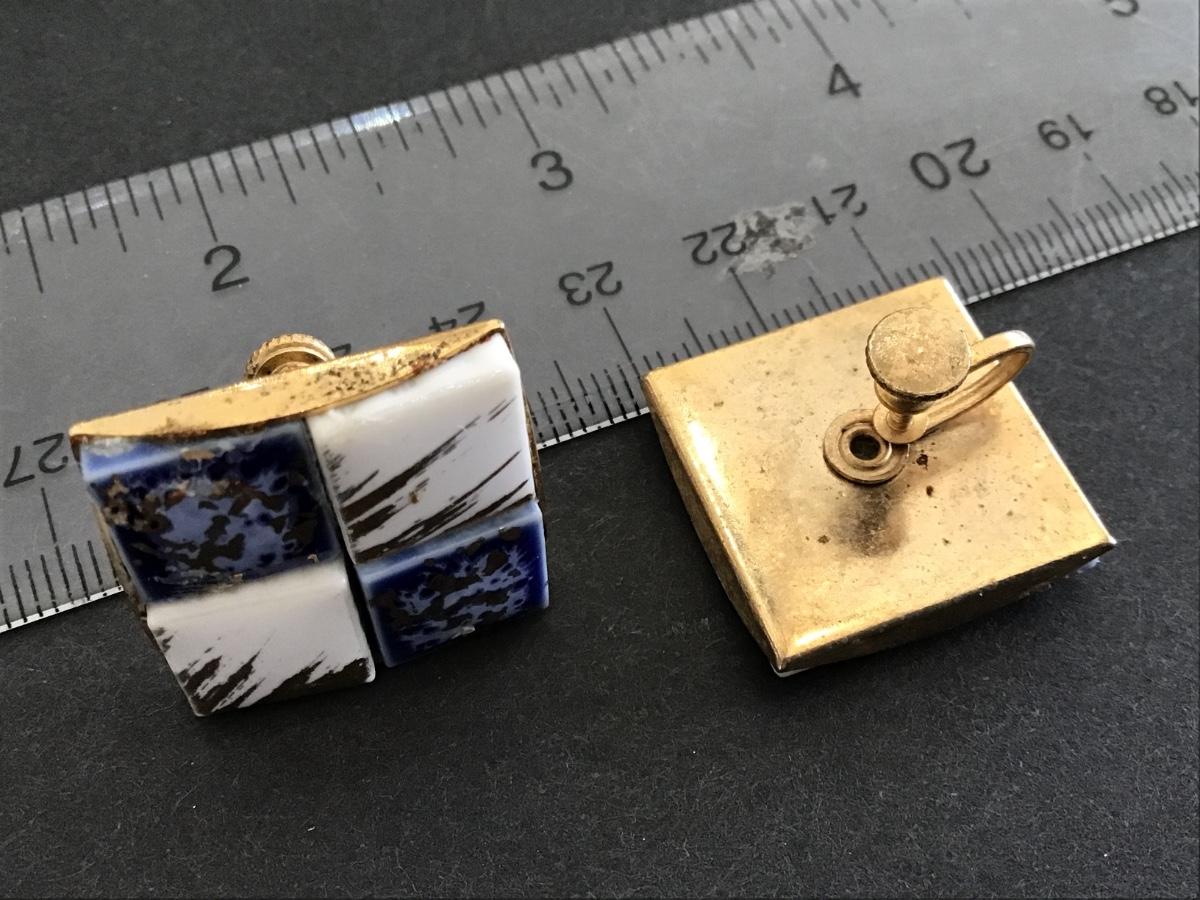 Vintage Screwback Earrings Ceramic Type Gold accents Colbalt Blue