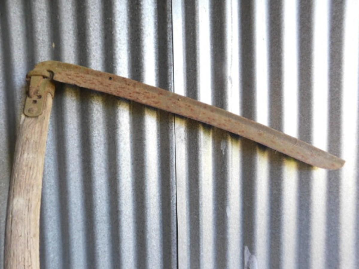 Vintage Scythe blade has oxidation and will need to be cleaned