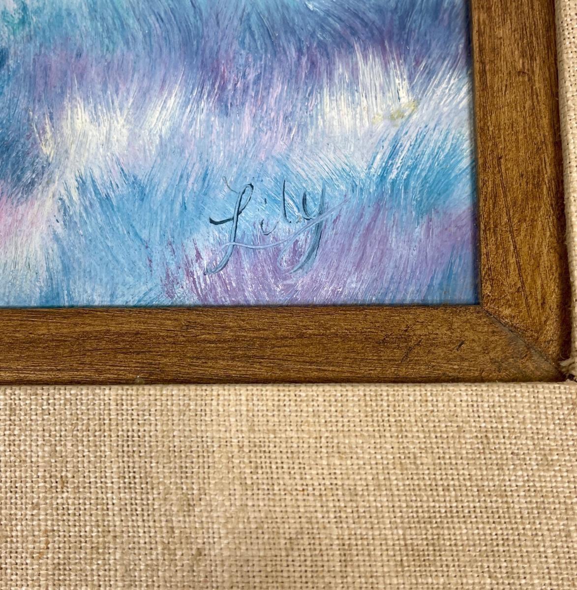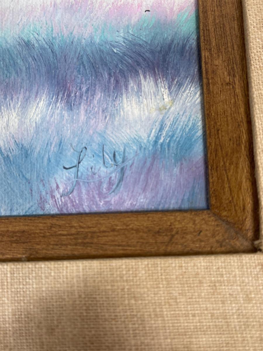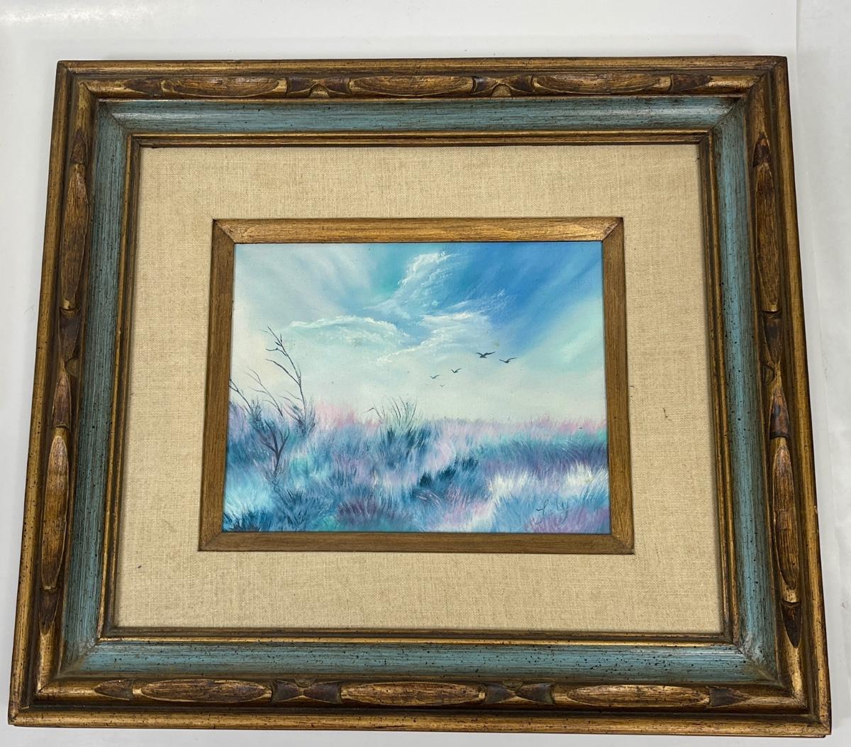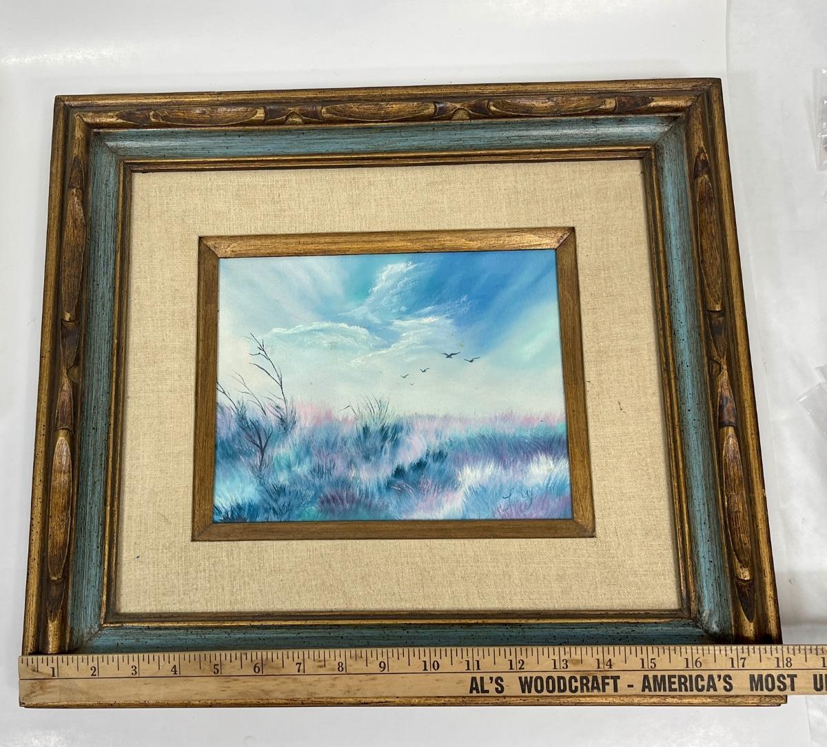Oil on canvas. In good condition. Framed size is approx. 19" x 17", artwork is approx. 8" x 10".