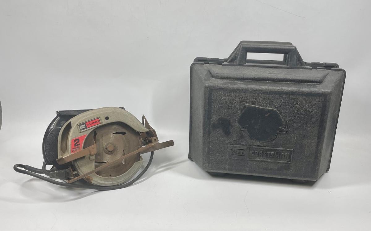 Vintage Sears Craftsman 2HP 7 1/4"Circular Saw With Carry/Storage case and extra blades. Model 315.10864