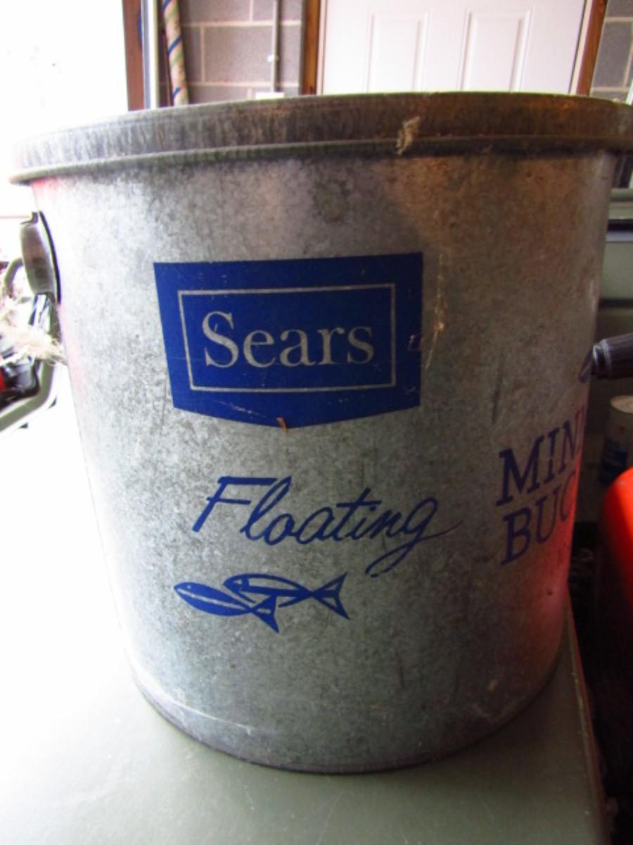 Vintage Sears Galvanized Metal Floating Minnow Bucket- 10 Quart