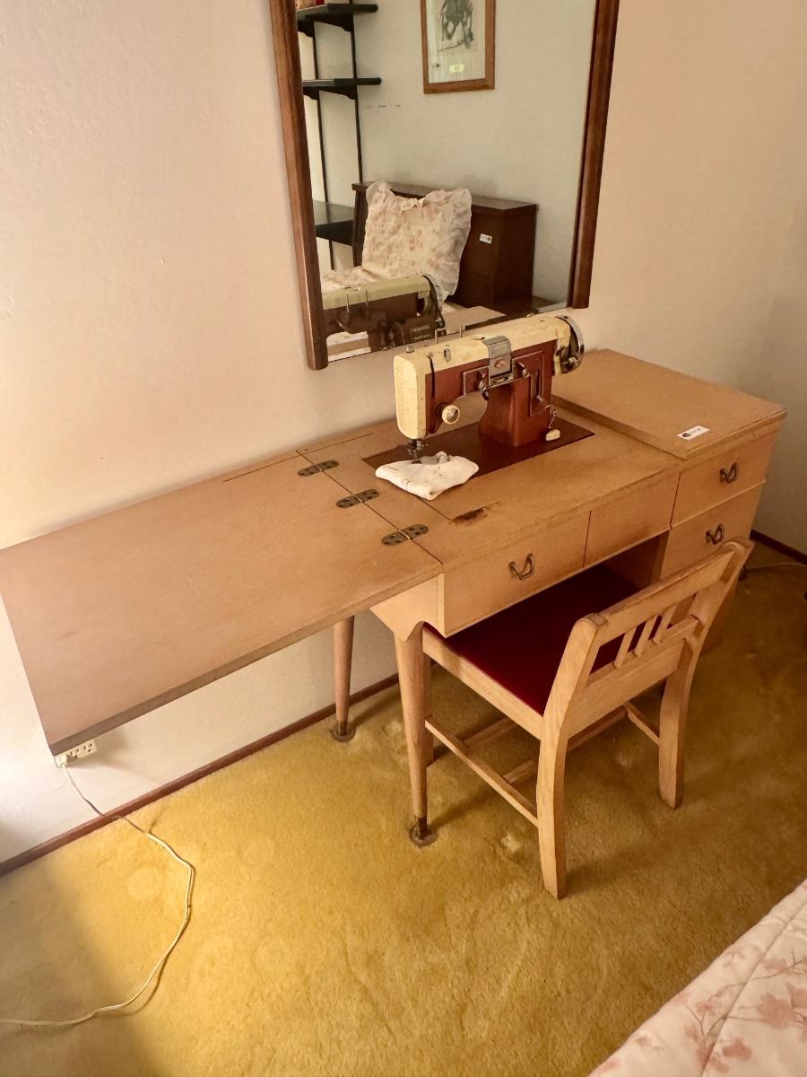 Vintage Sears Kenmore Automatic Sewing Machine Cabinet and Chair - Powers On But Not Working