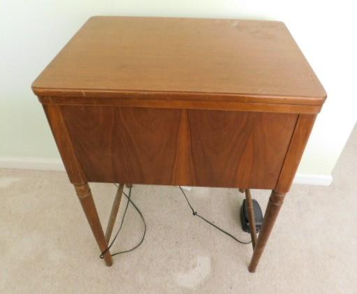 Vintage Sears Kenmore Sewing Machine with Cabinet. Cabinet has some staining and scratches and sewing machine will need to be cleaned