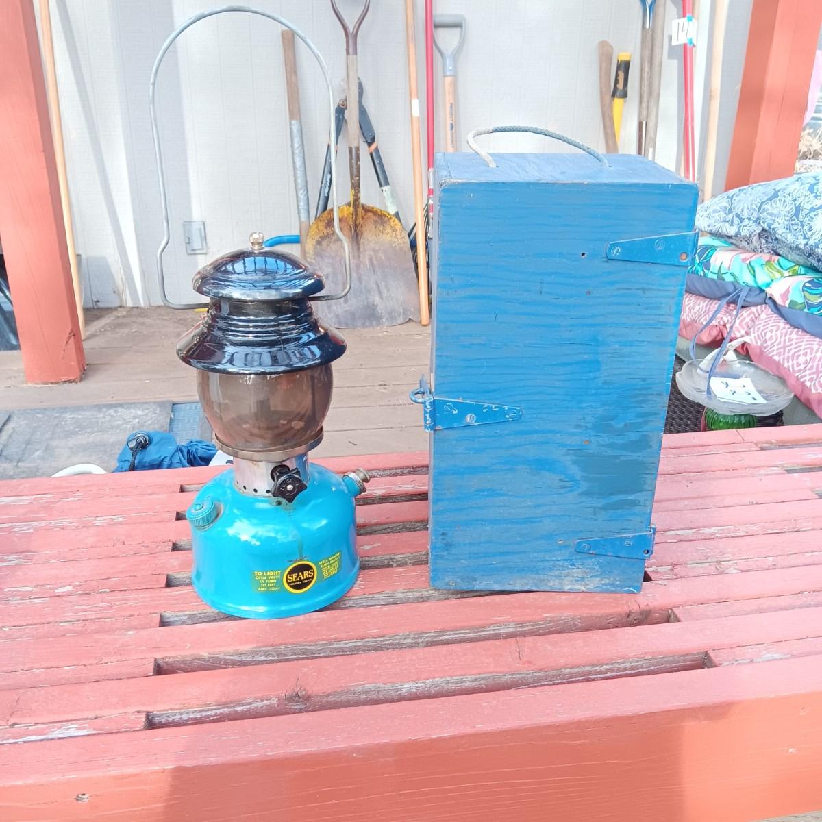 VINTAGE SEARS KEROSENE LANTERN WITH WOODEN BOX