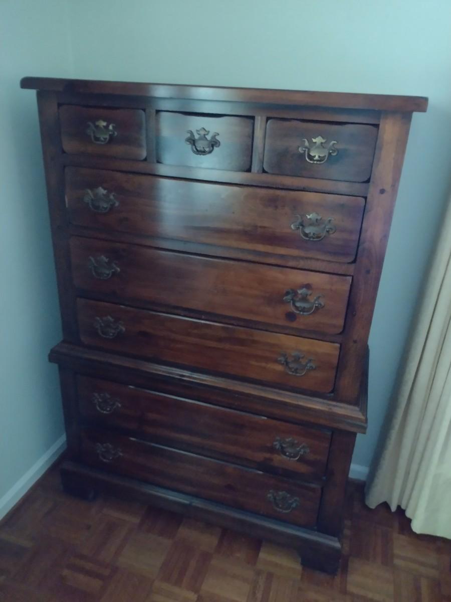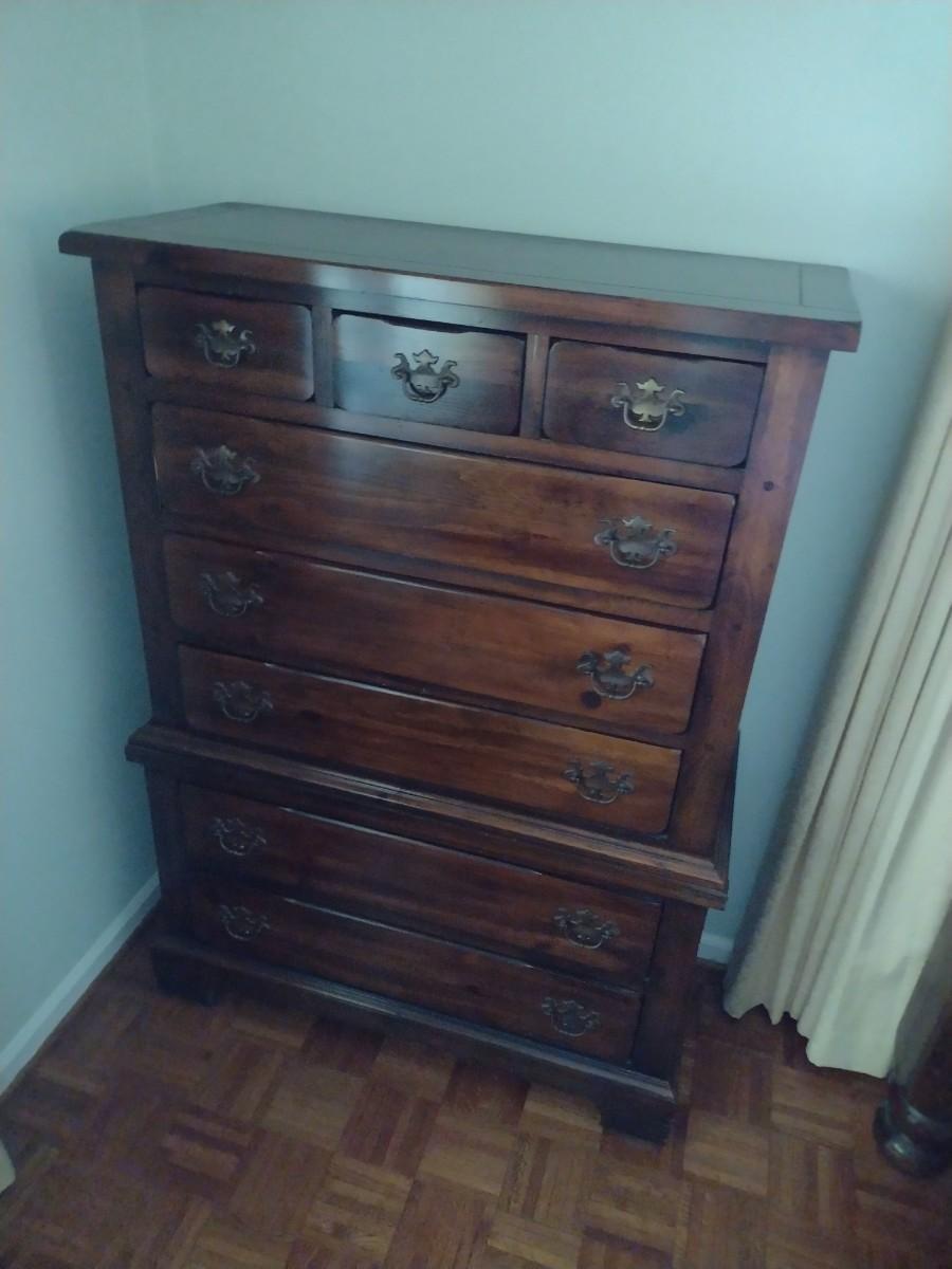 Vintage Sears Open Hearth Solid Walnut Three Over Five Chest of Drawers