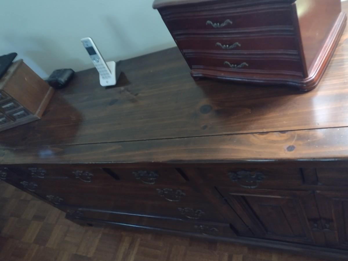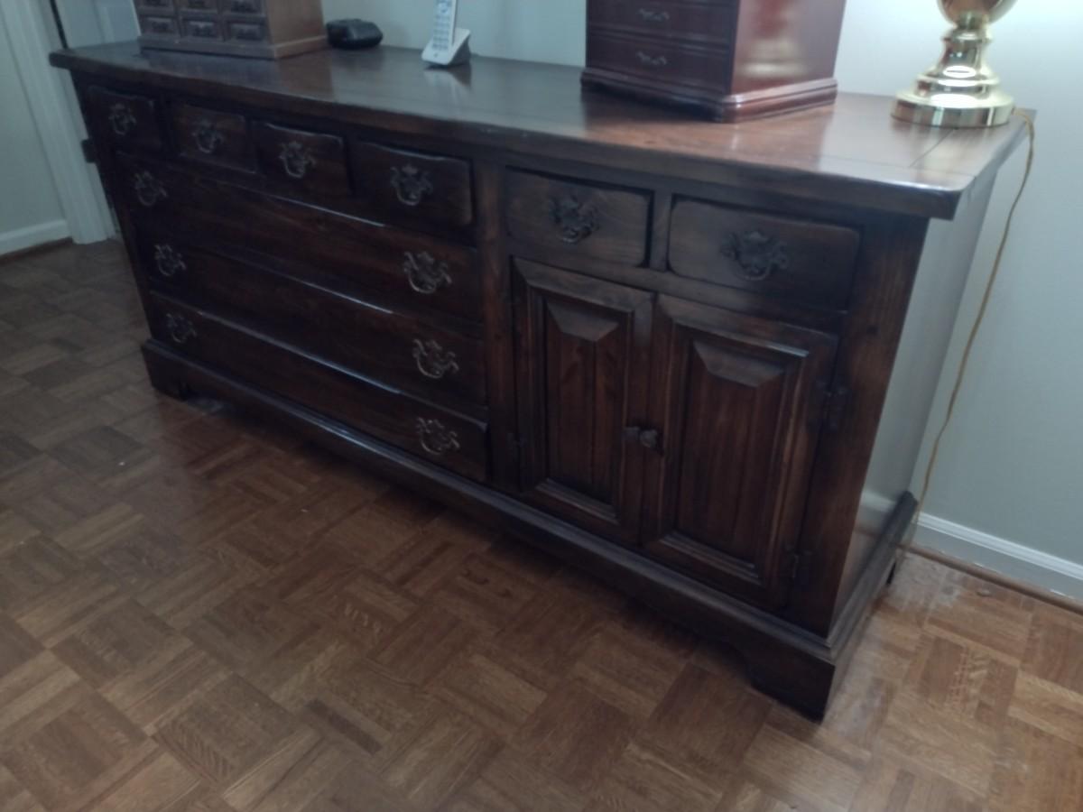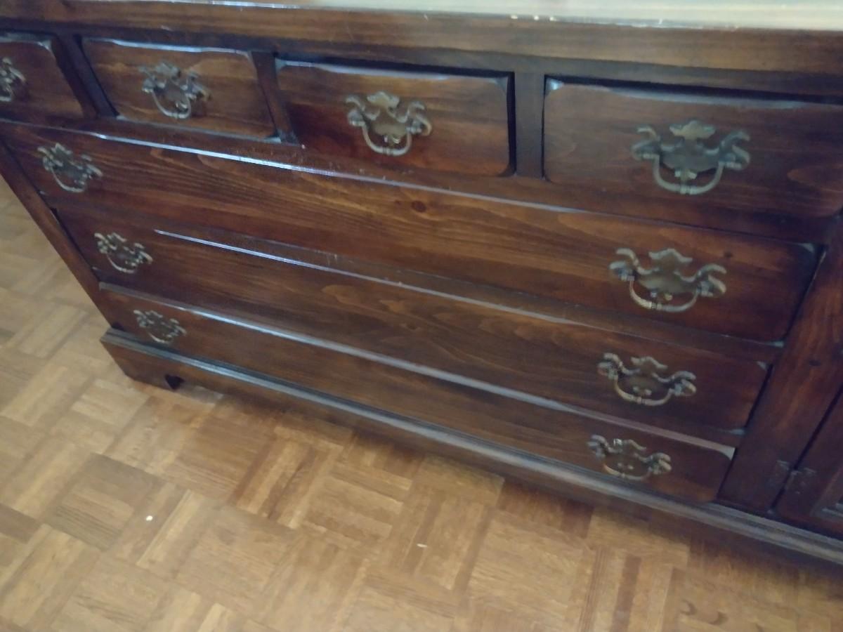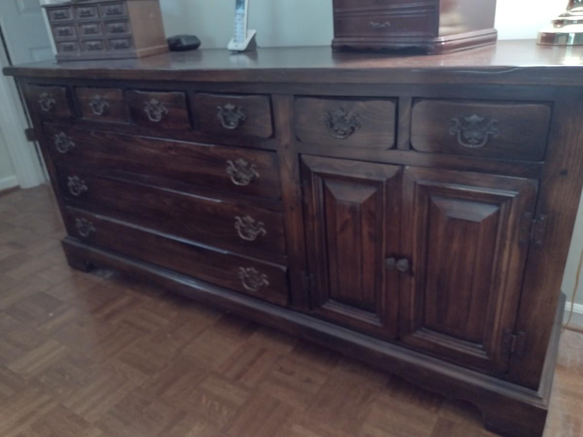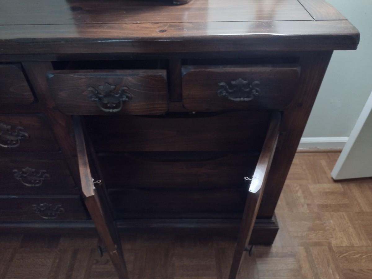 Vintage Sears Open Hearth Wood Stretch Dresser with Sweater Drawers in Walnut Finish (No Contents)
