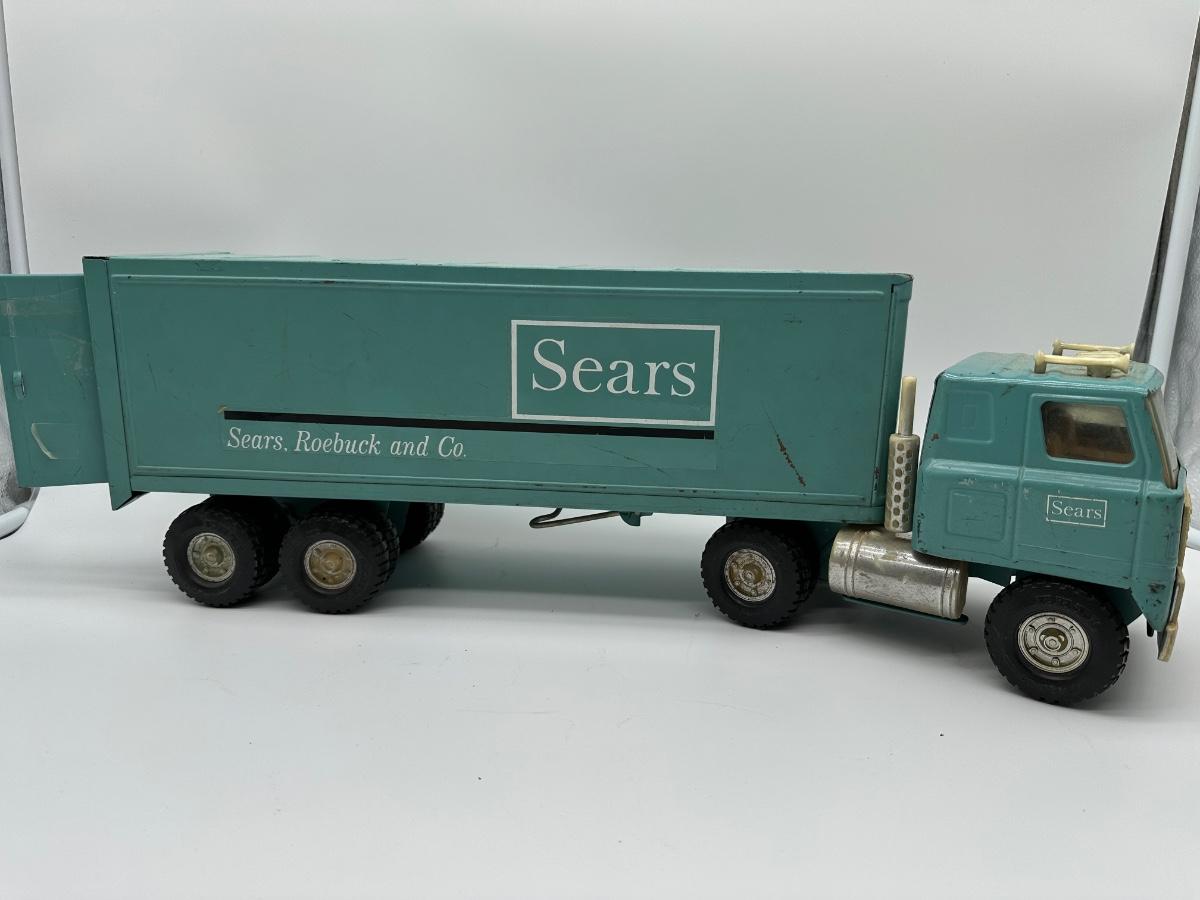 Vintage Sears Pressed Steel Semi Truck w/ Box Trailer – International Cab