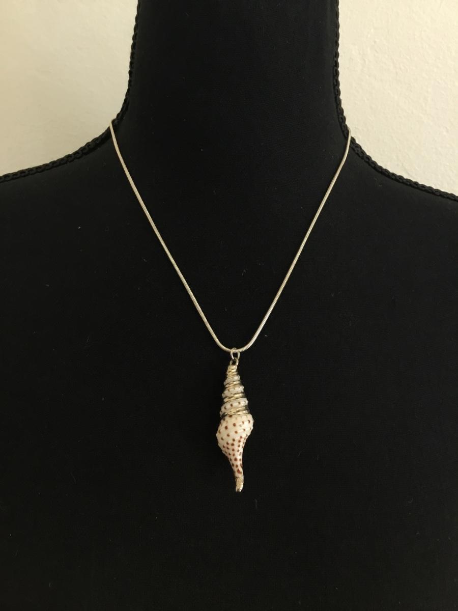 Vintage seashell pendant & silver tone chain necklace