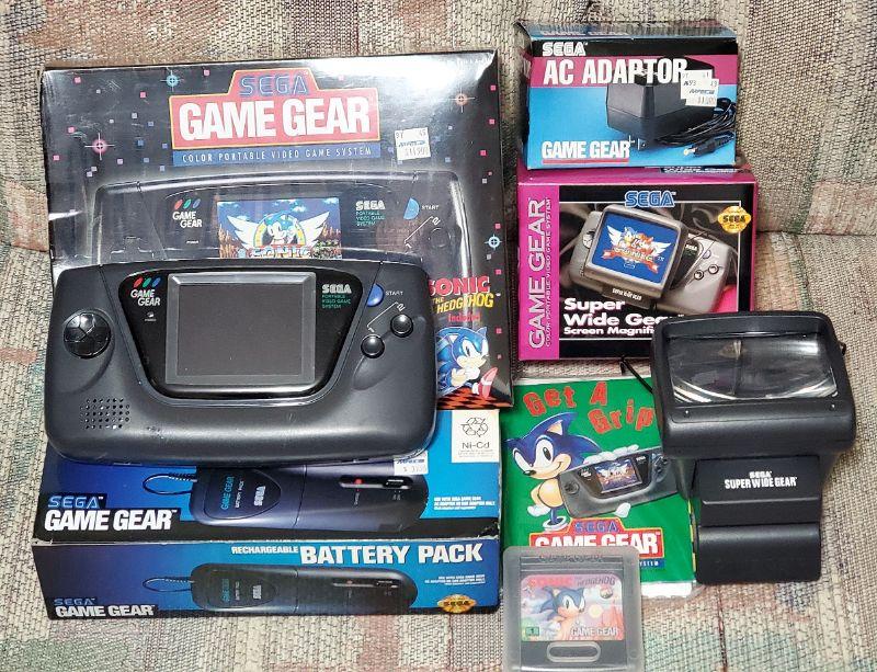 -Vintage Sega Game Gear Color Portable Video Game System (Slightly used in box w/ all pamphlets + Sonic the Hedgehog game)