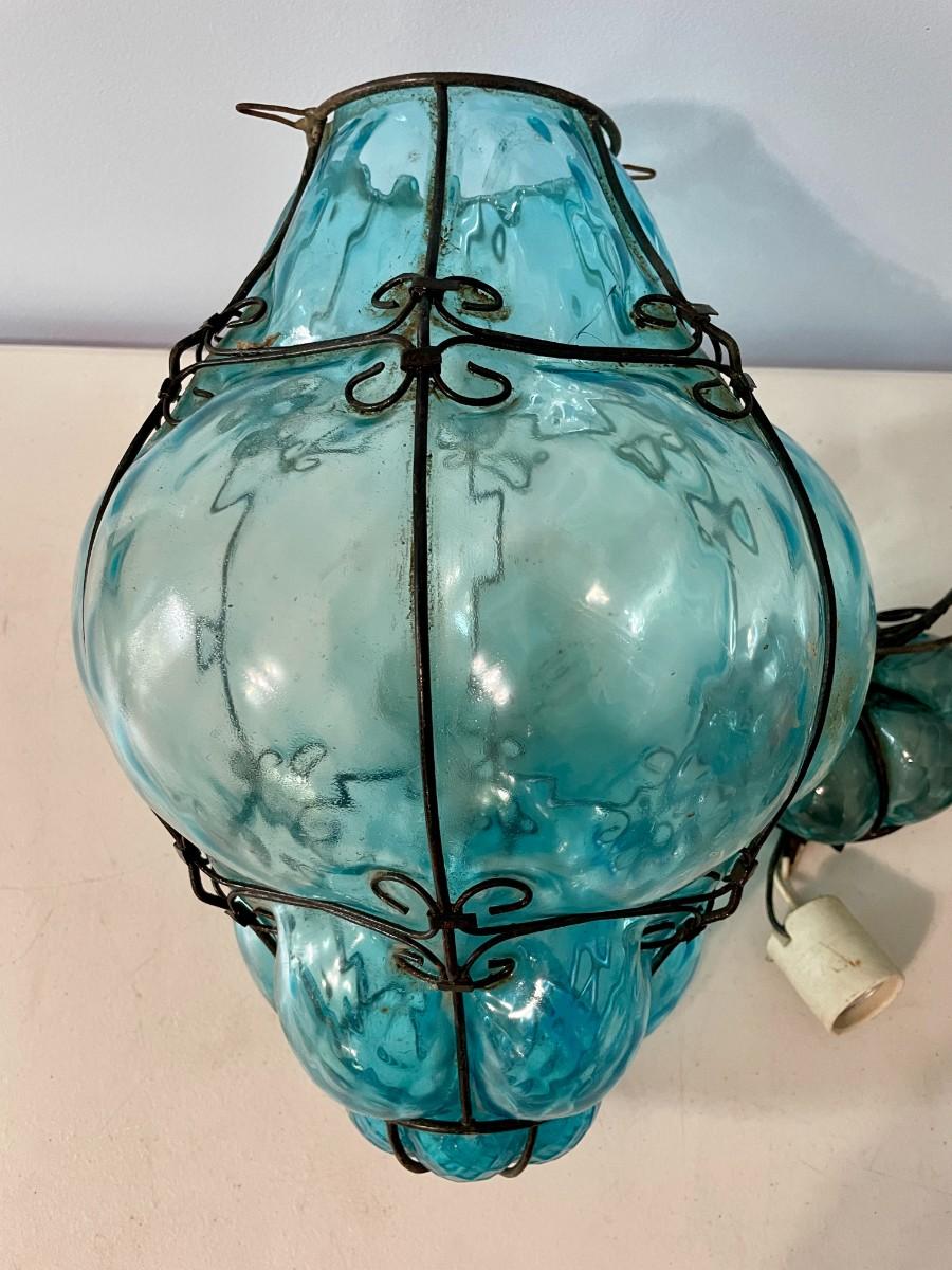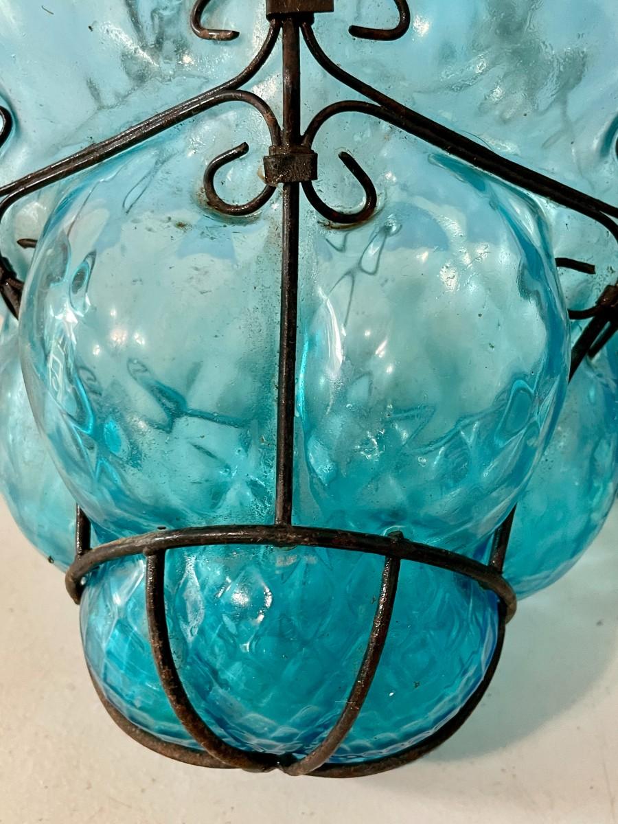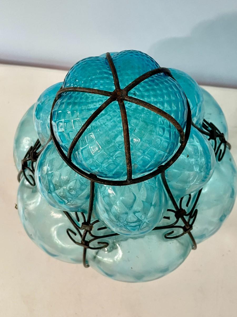 Vintage Seguso Murano blue "bubble glass" pendant chandelier