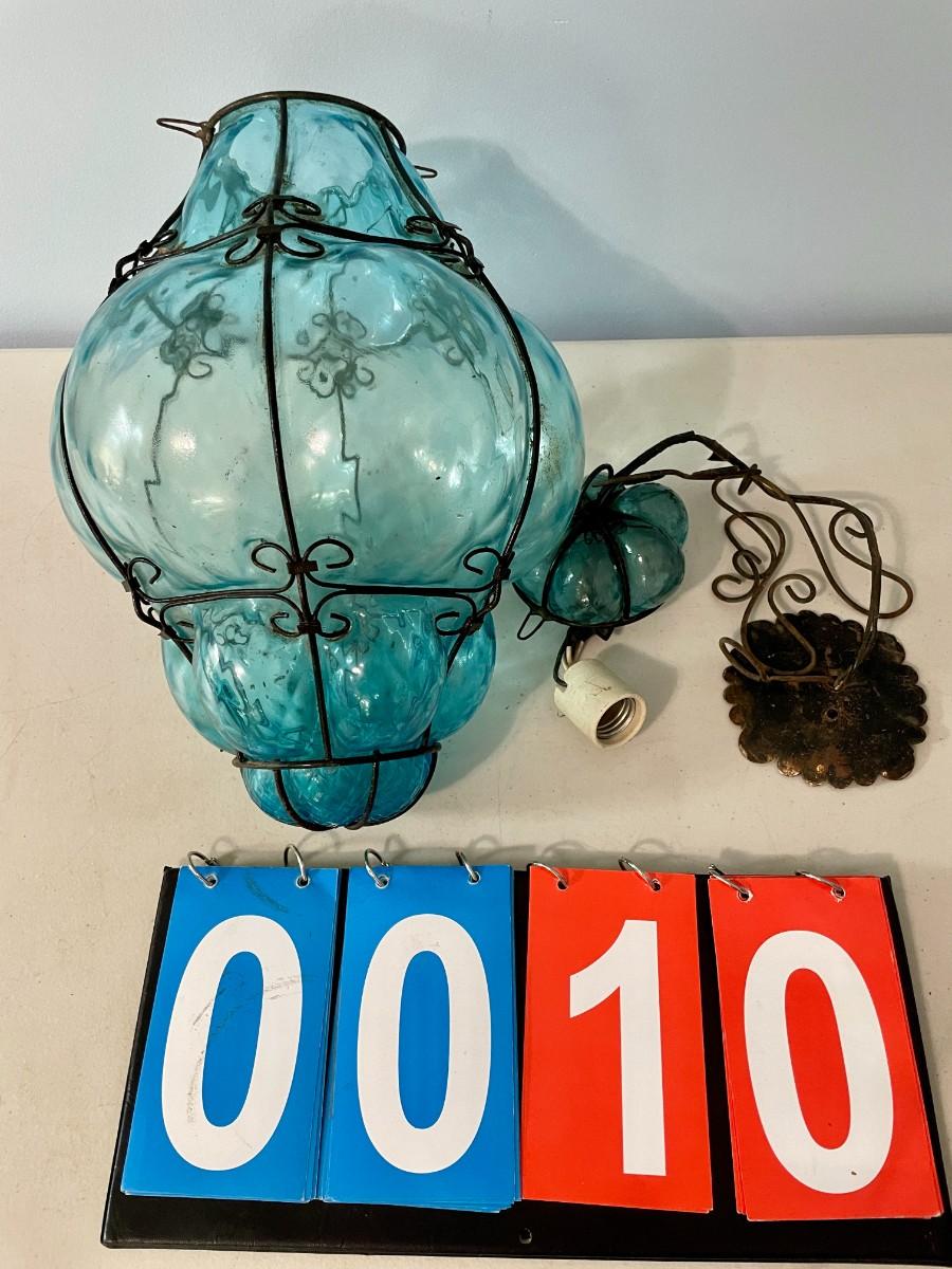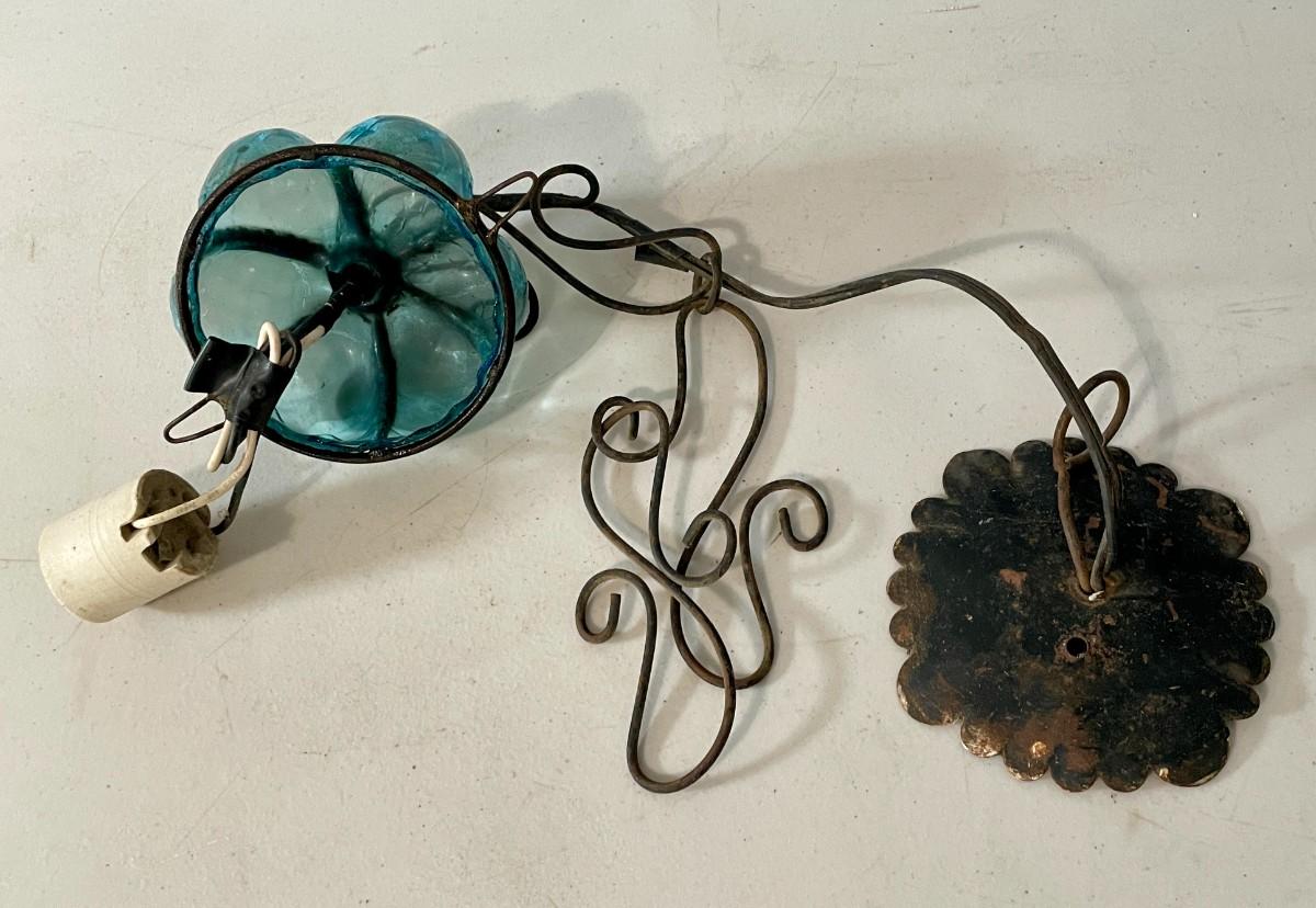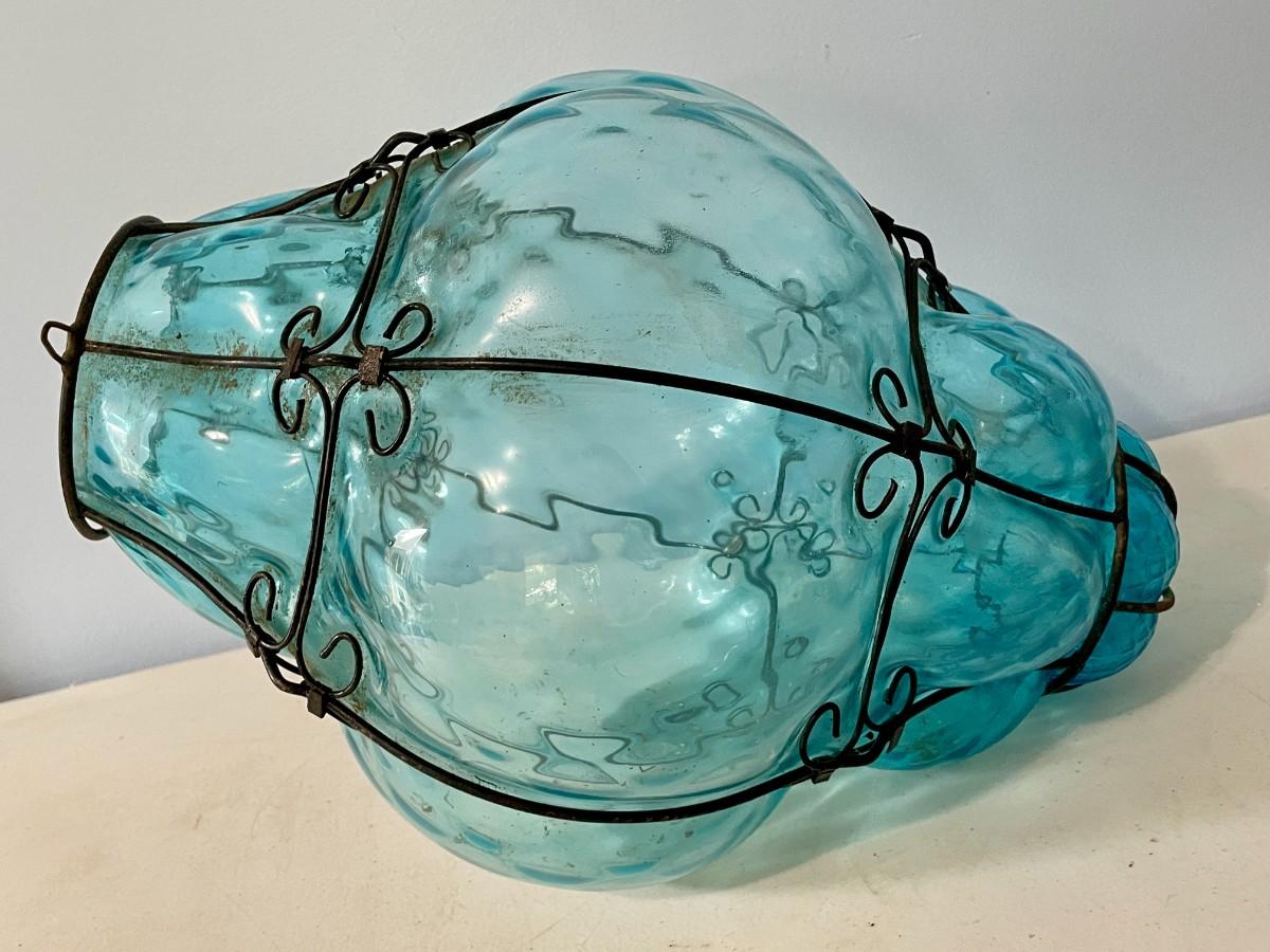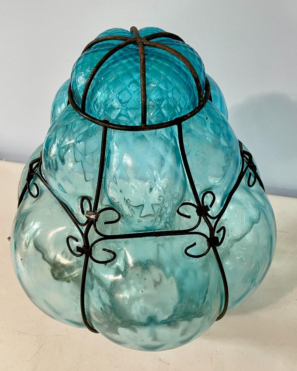 Vintage Seguso Murano blue "bubble glass" pendant chandelier