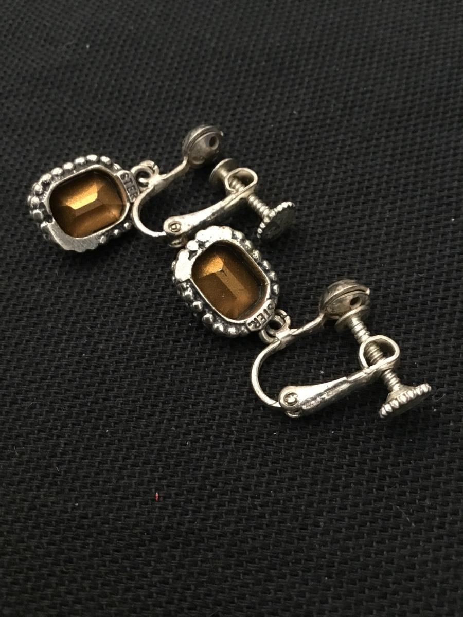 Vintage semi precious light, purple stone and sterling silver screw back earrings