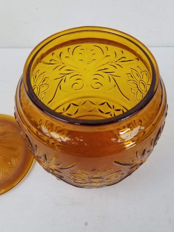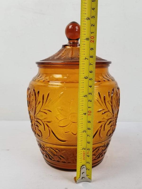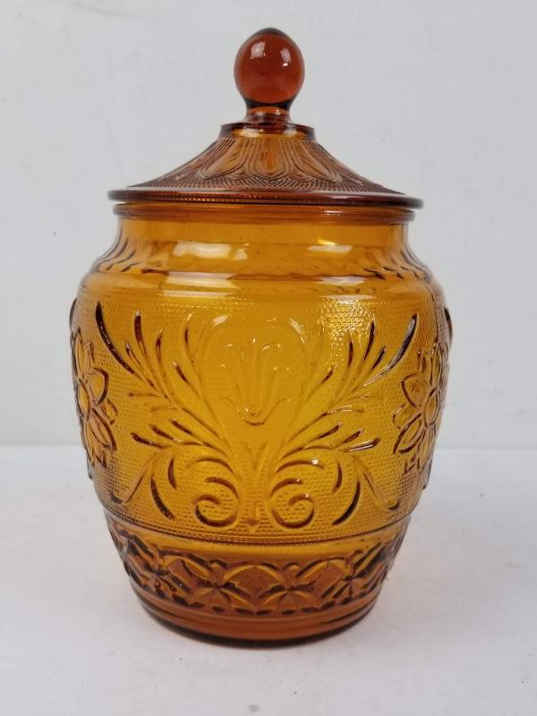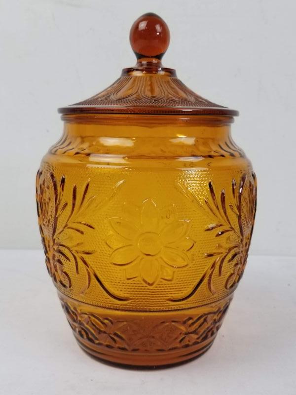 Vintage Semi-Transparent Glass Jar with Lid - Translucent Amber