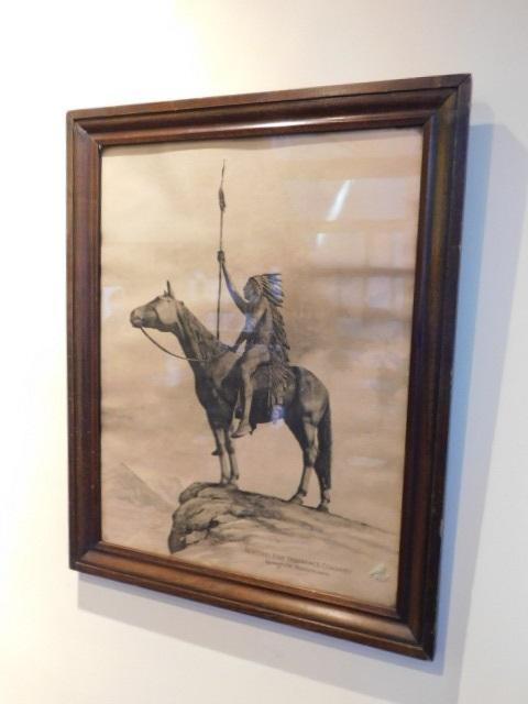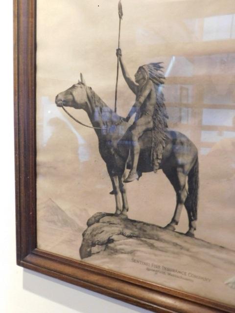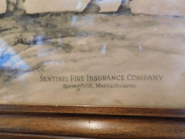 Vintage Sentinel Fire Insurance Company Print Advertisment Warrior on Horse Framed 17"x20"