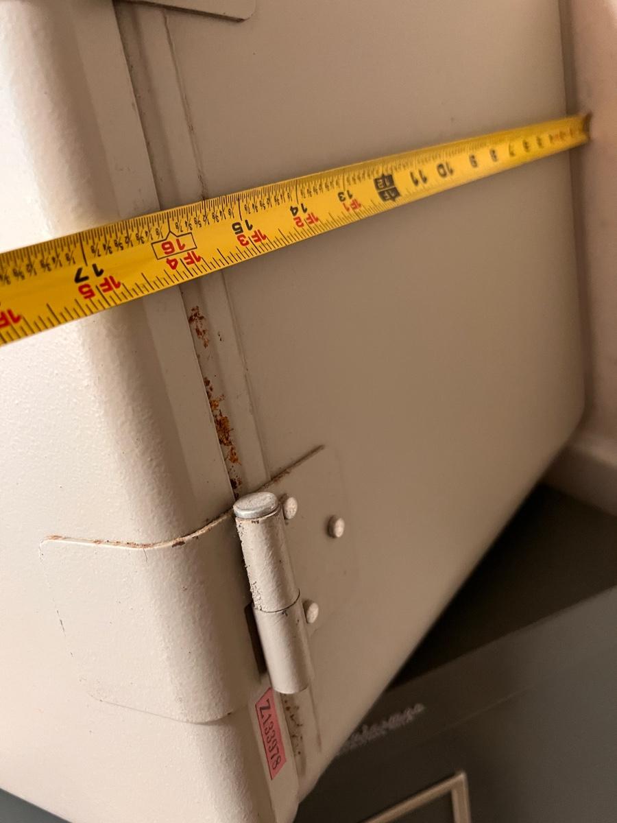Working condition. Heavy. See pics for measurements. Comes w/ number code for locking.