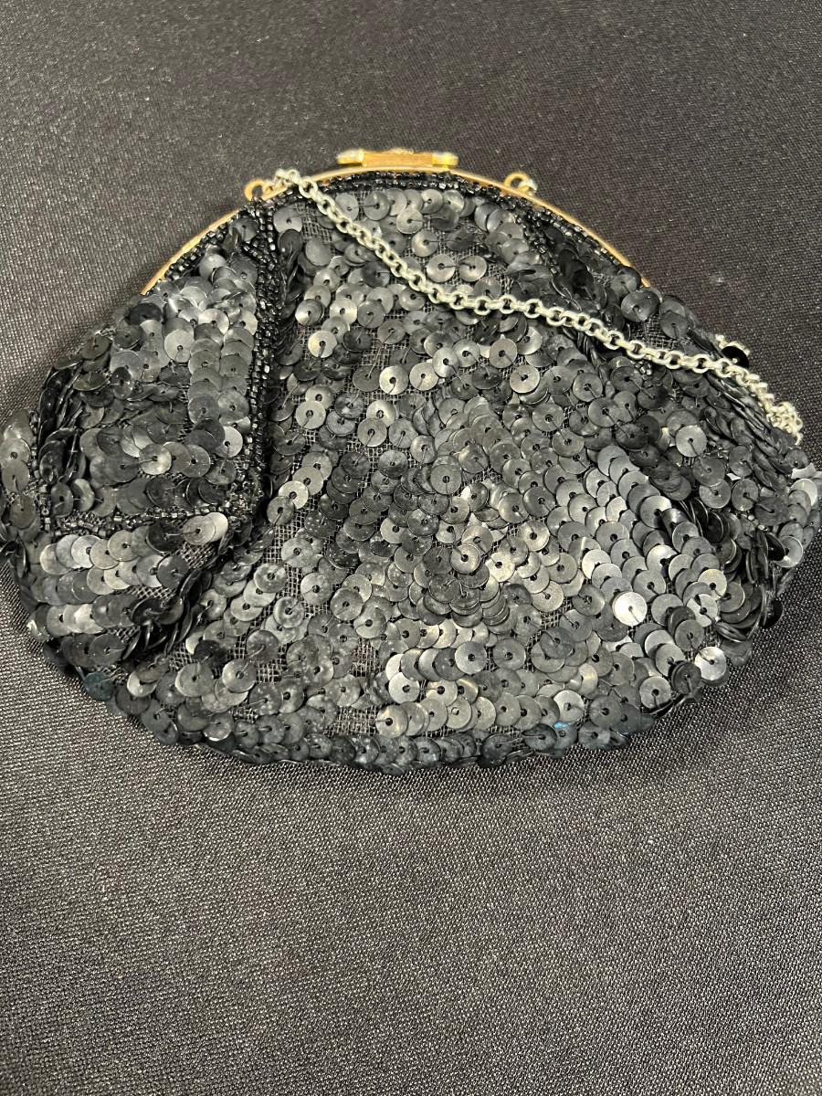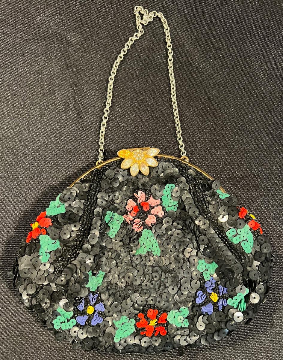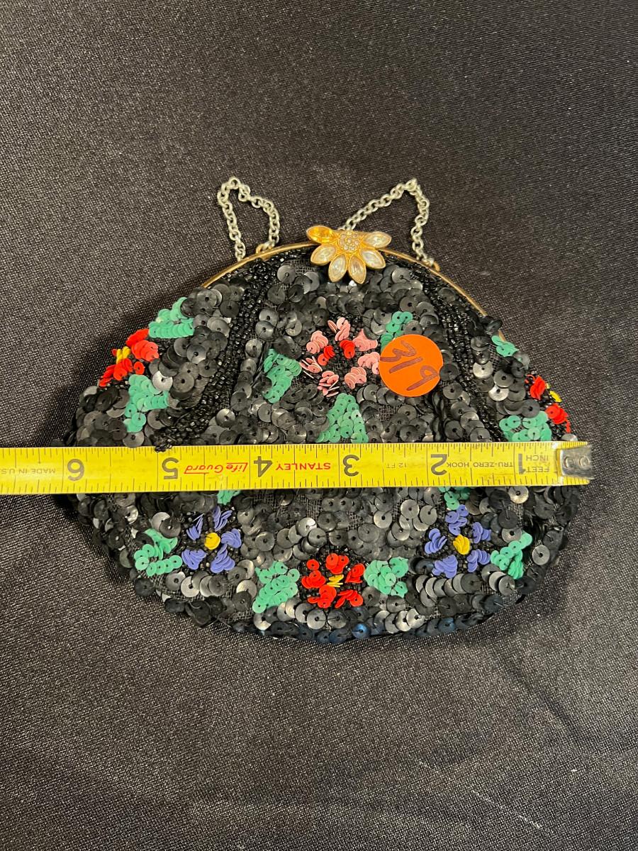 Vintage Sequined and Beaded Evening Purse with Chain Circa 1920's