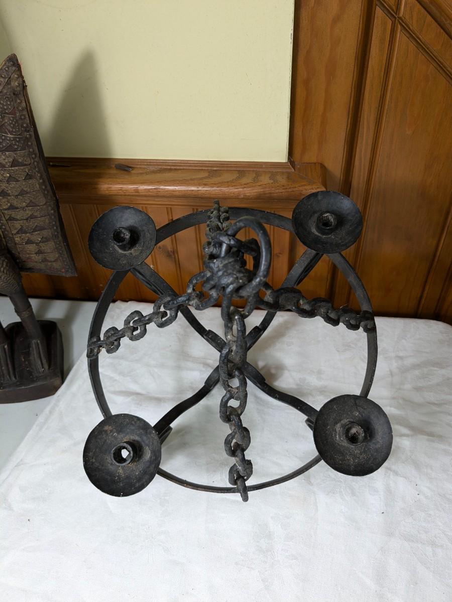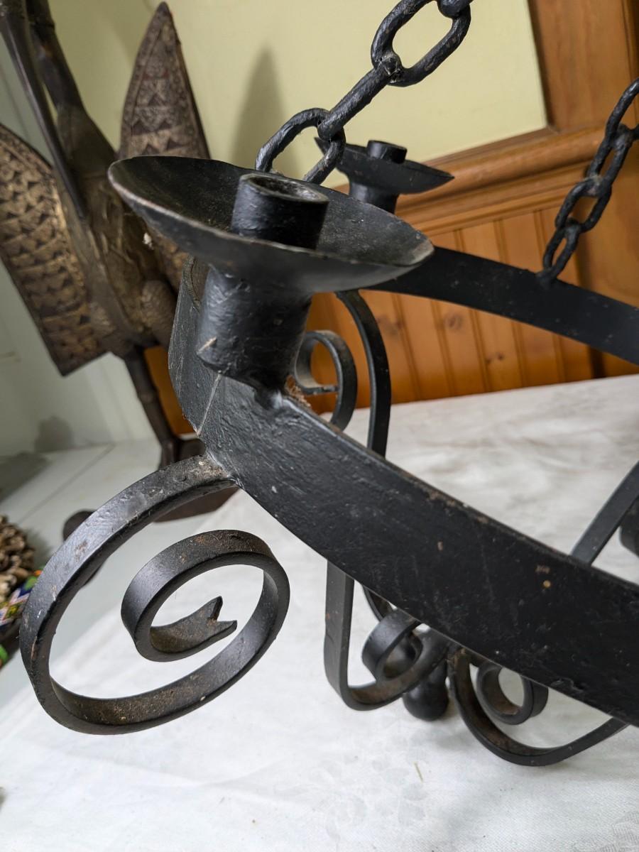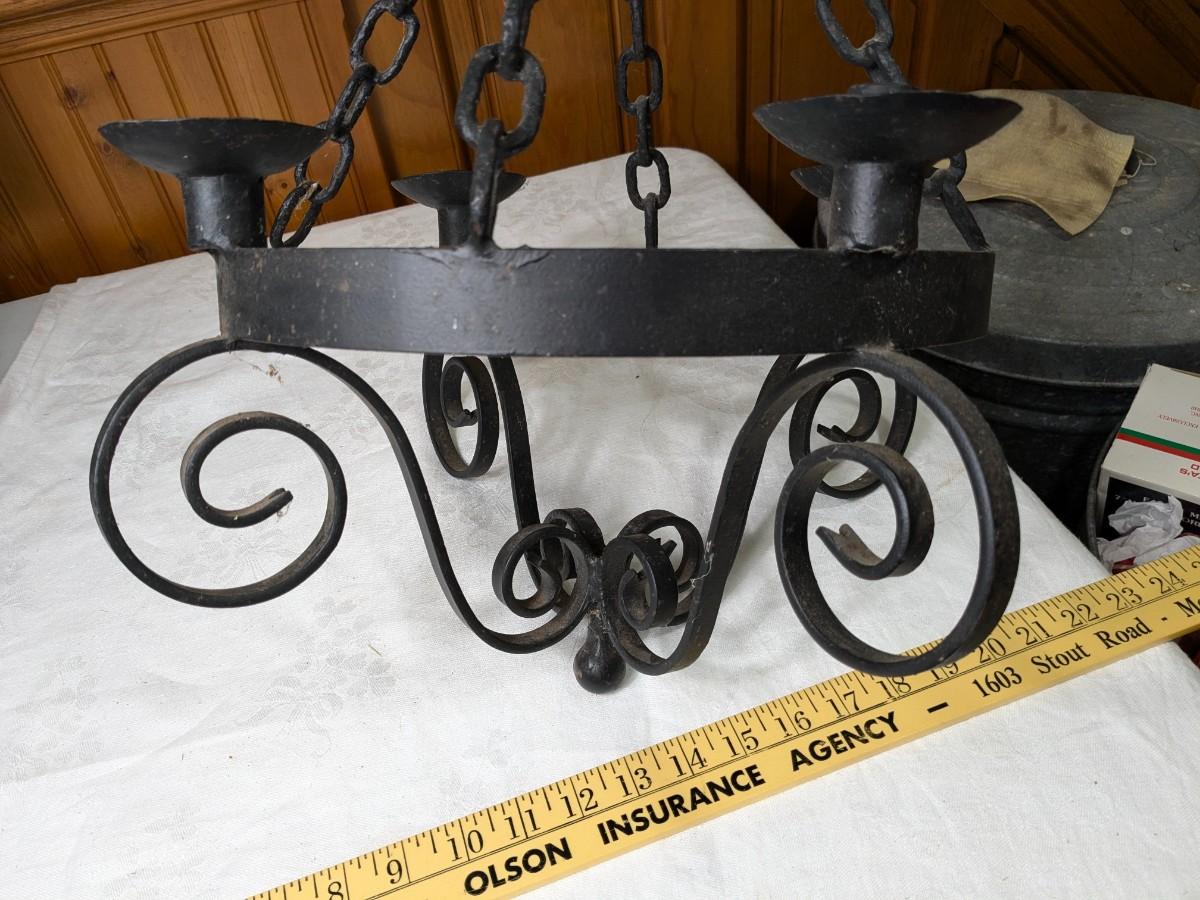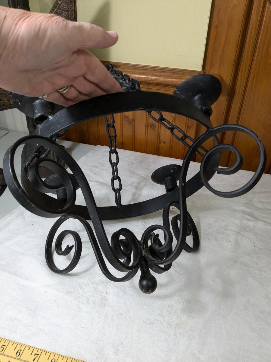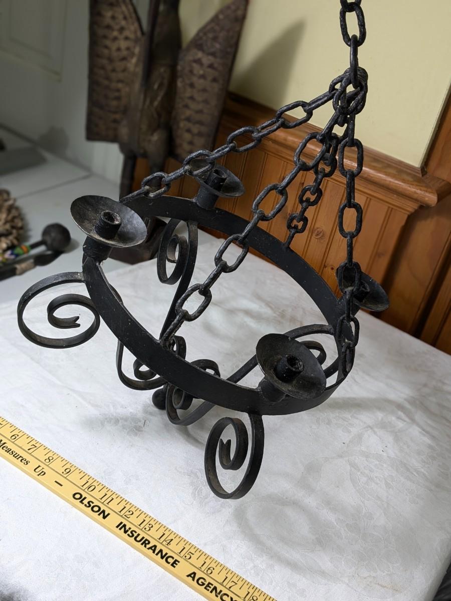 Vintage Serious Wrought Iron Candle Chandelier