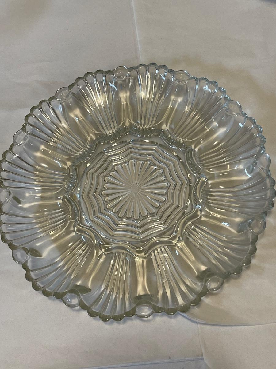 Vintage Deviled Egg Serving Plate Holds 12 Clear Glass Flower Design Dish, 10”