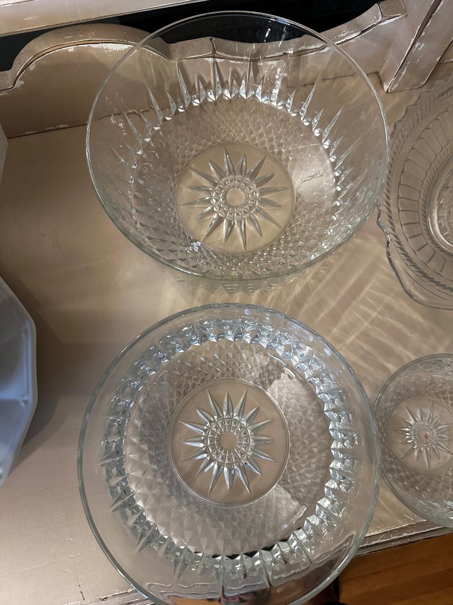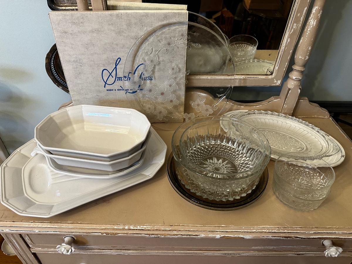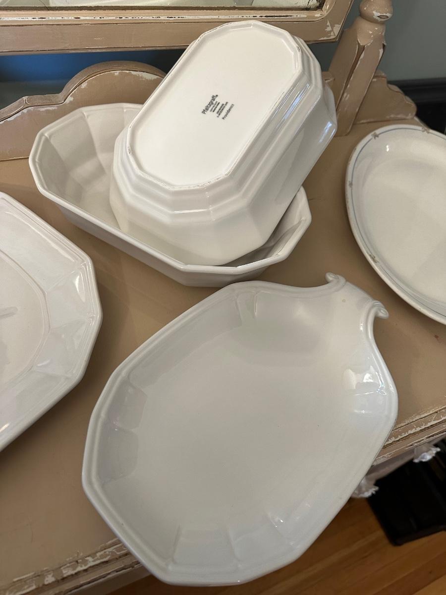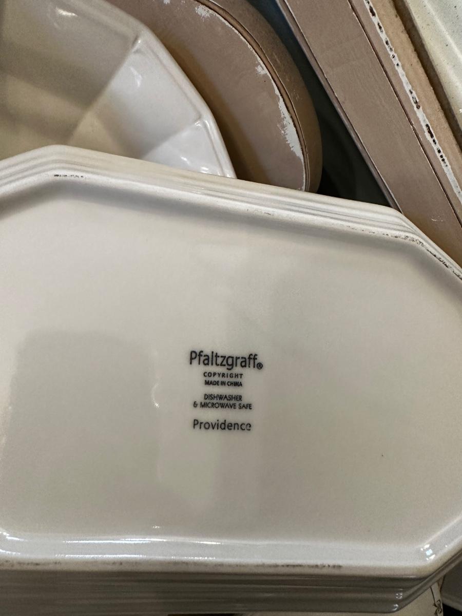 This is a Pfaltzgraff rectangular 16” serving/ meat platter2 oval serving bowls and one small 11” platter in the Providence pattern. All in excellent condition.