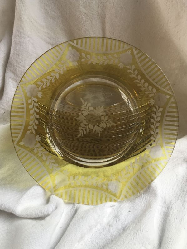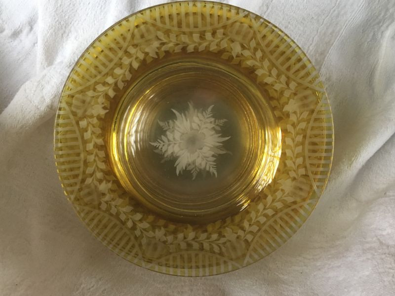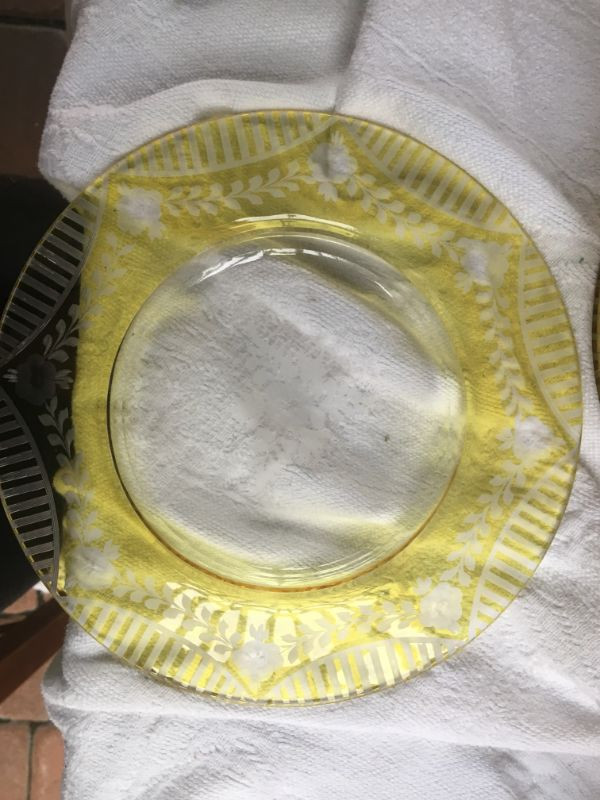 Set of 11 depression dinner plates, all etched, in perfect conditions measuring 9" in diameter.