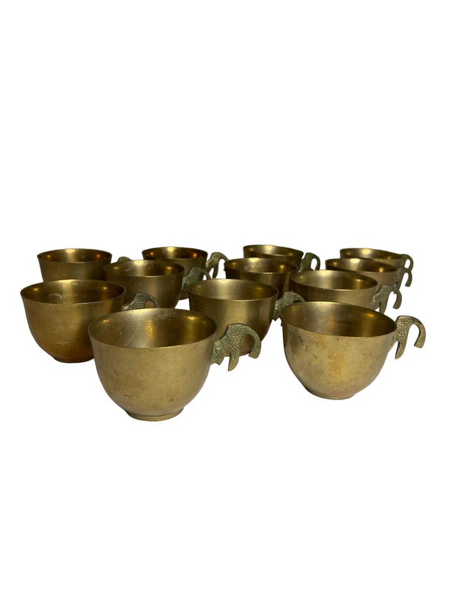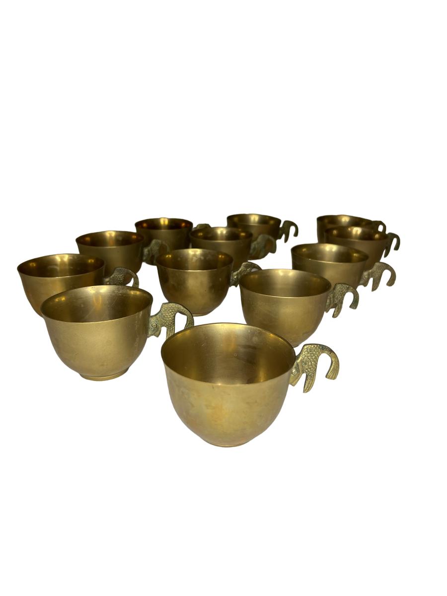 Vintage - Set of 12 Brass Cups with Koi Fish Handle - Made in Korea