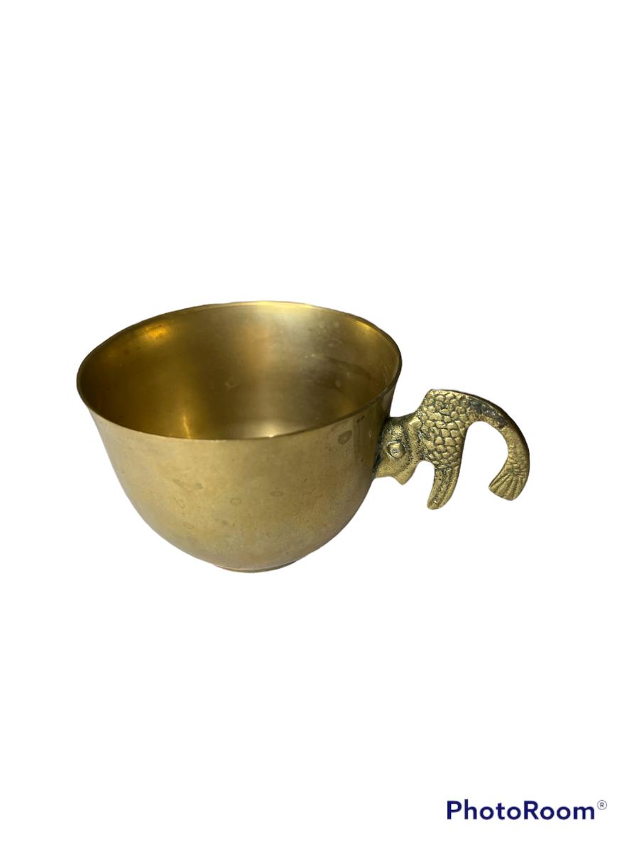 Vintage - Set of 12- Brass Cups With Koi Fish Handle - Made in Korea