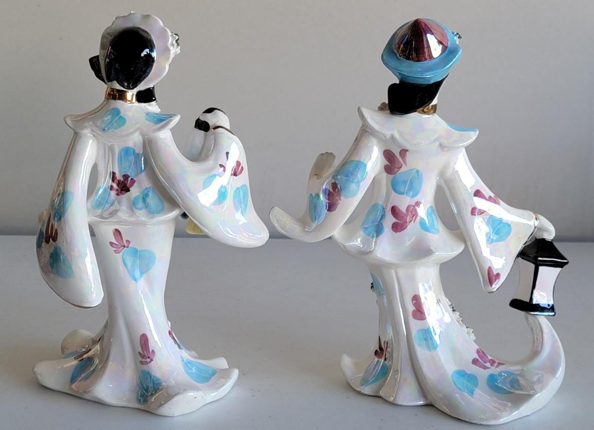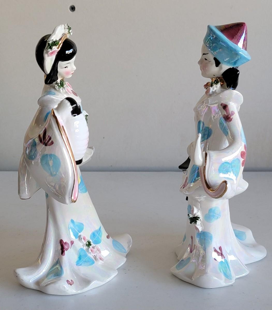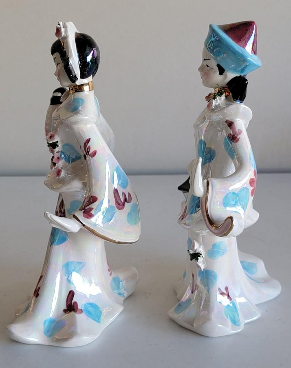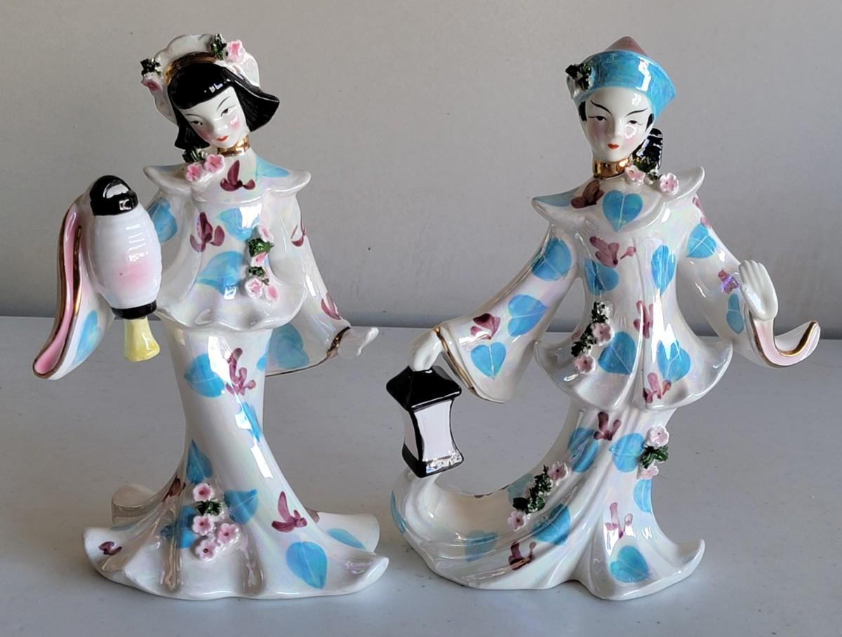 Vintage Set of 2 - 1956 Lefton Japanese Dancing Figurines Male and Female with Lanterns