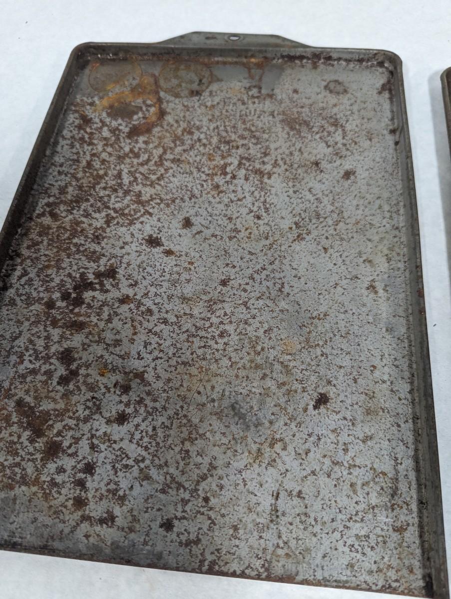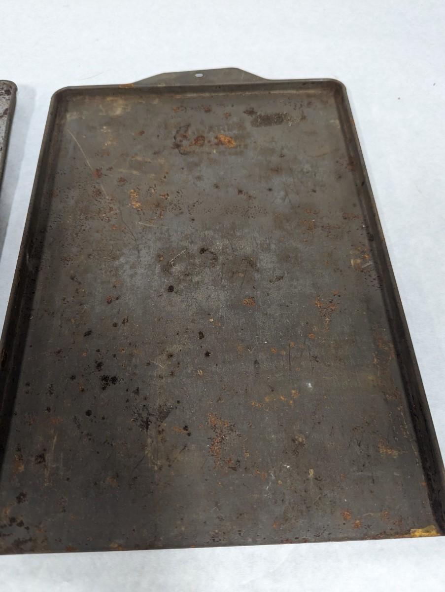 Vintage Set of 2 Biscuit Baking Sheet Trays Embossed With Ballard Oven Ready Biscuits