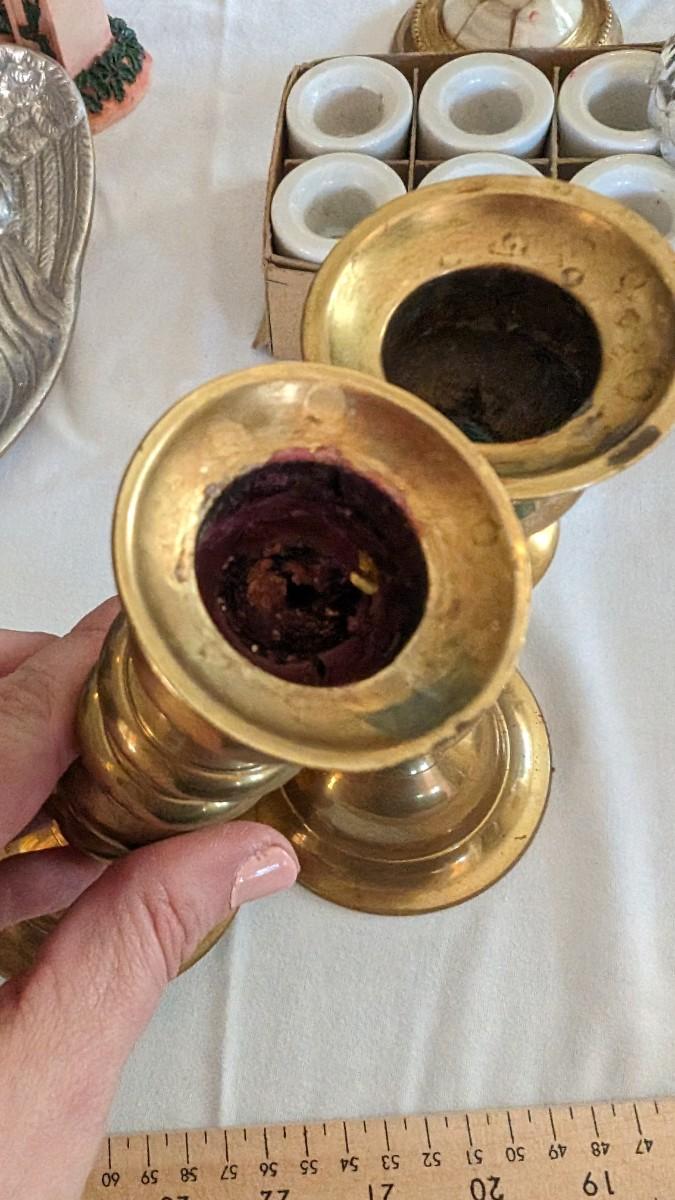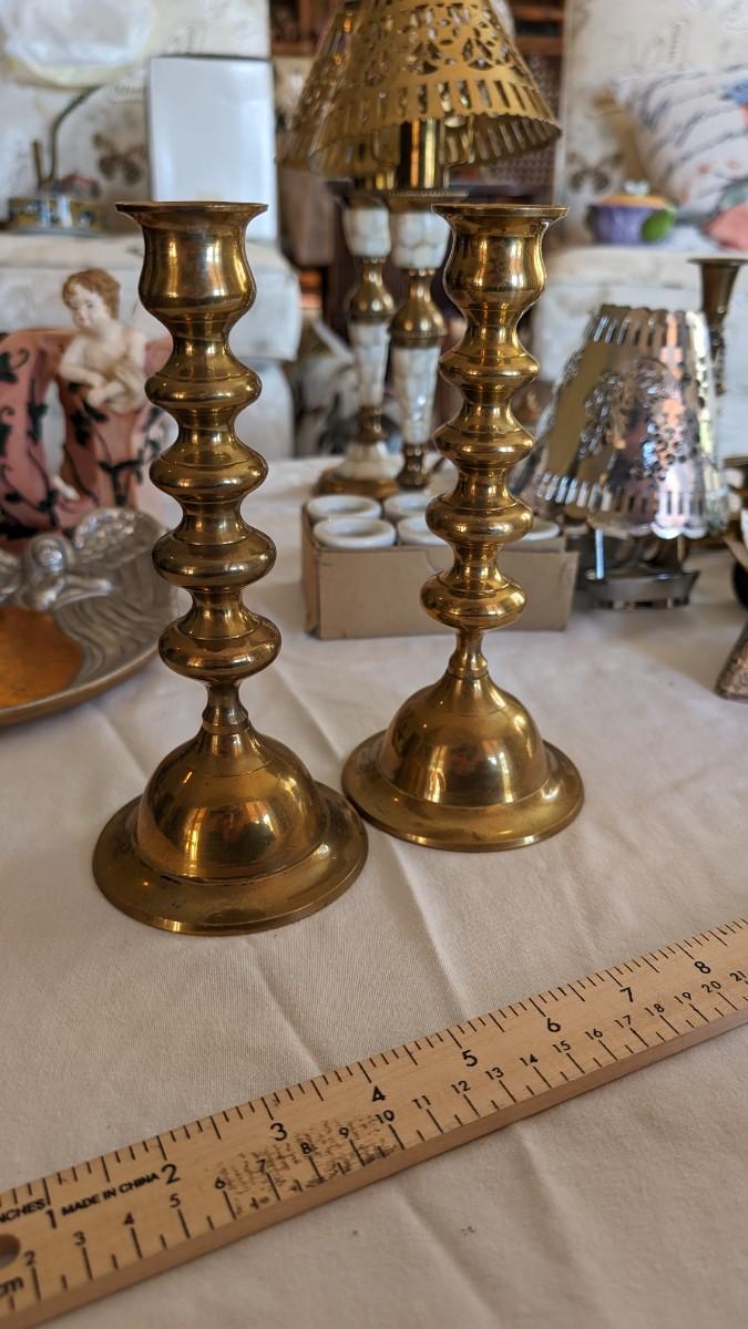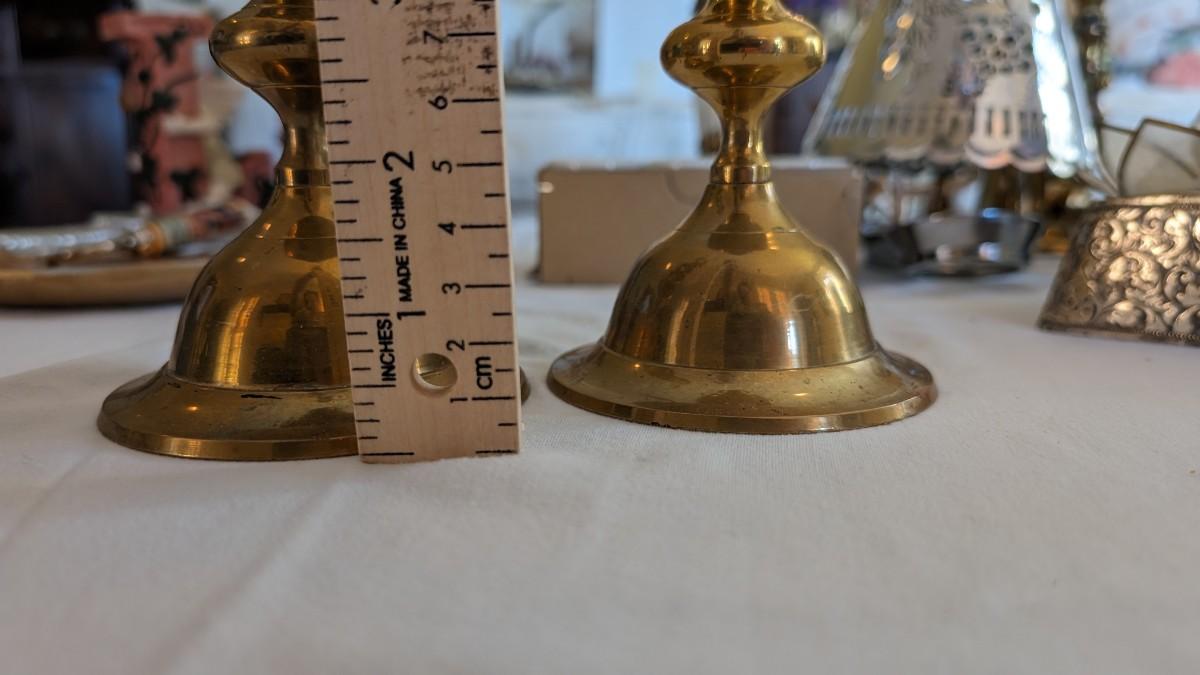Vintage Set of 2 Brass Candle Stick Holders Bell-shaped Bases