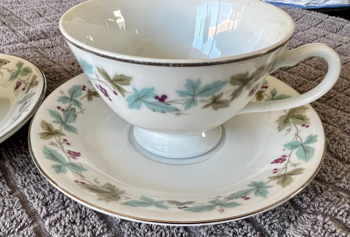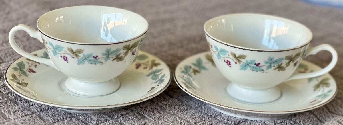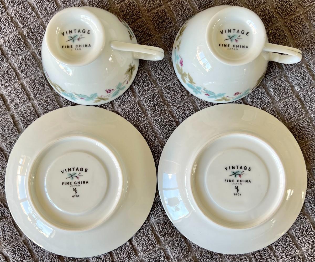 Vintage Set of 2 Fine China Winter Themed Tea Cups with Saucers By MS Japan 6701
