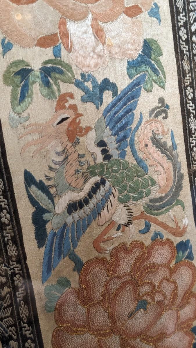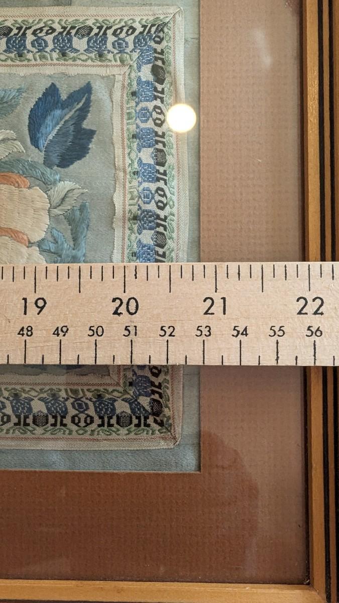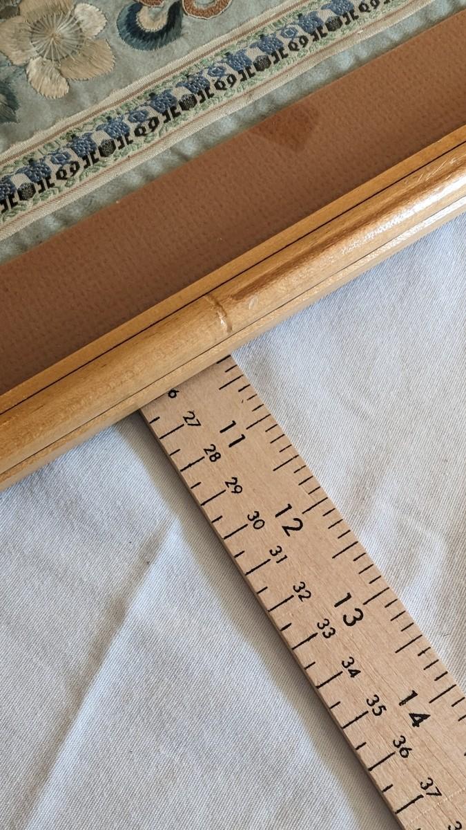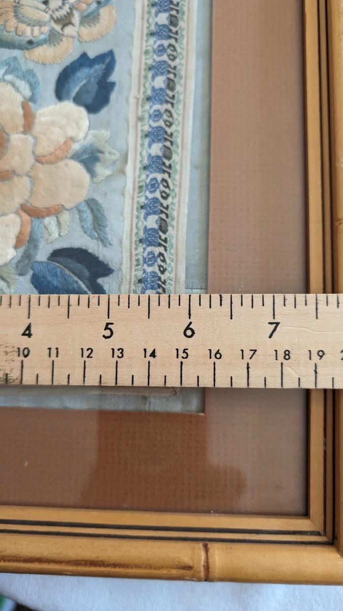 This is a set of two Bamboo-framed Silk fabric art embroidered. Approximately 25" x 10.25 x 1"