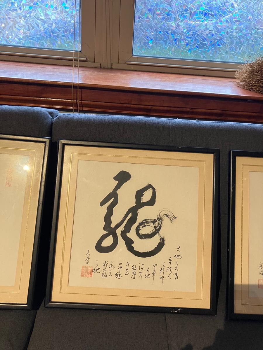 Vintage Set of 3 Framed Chinese Calligraphy Art Pieces - Dao (Way), Horse Illustration, Yuan (Fate)