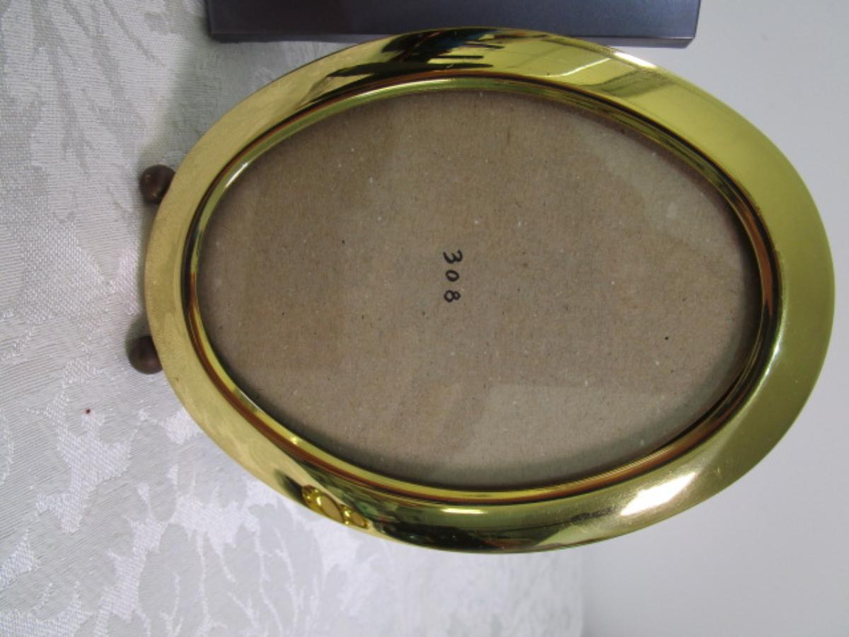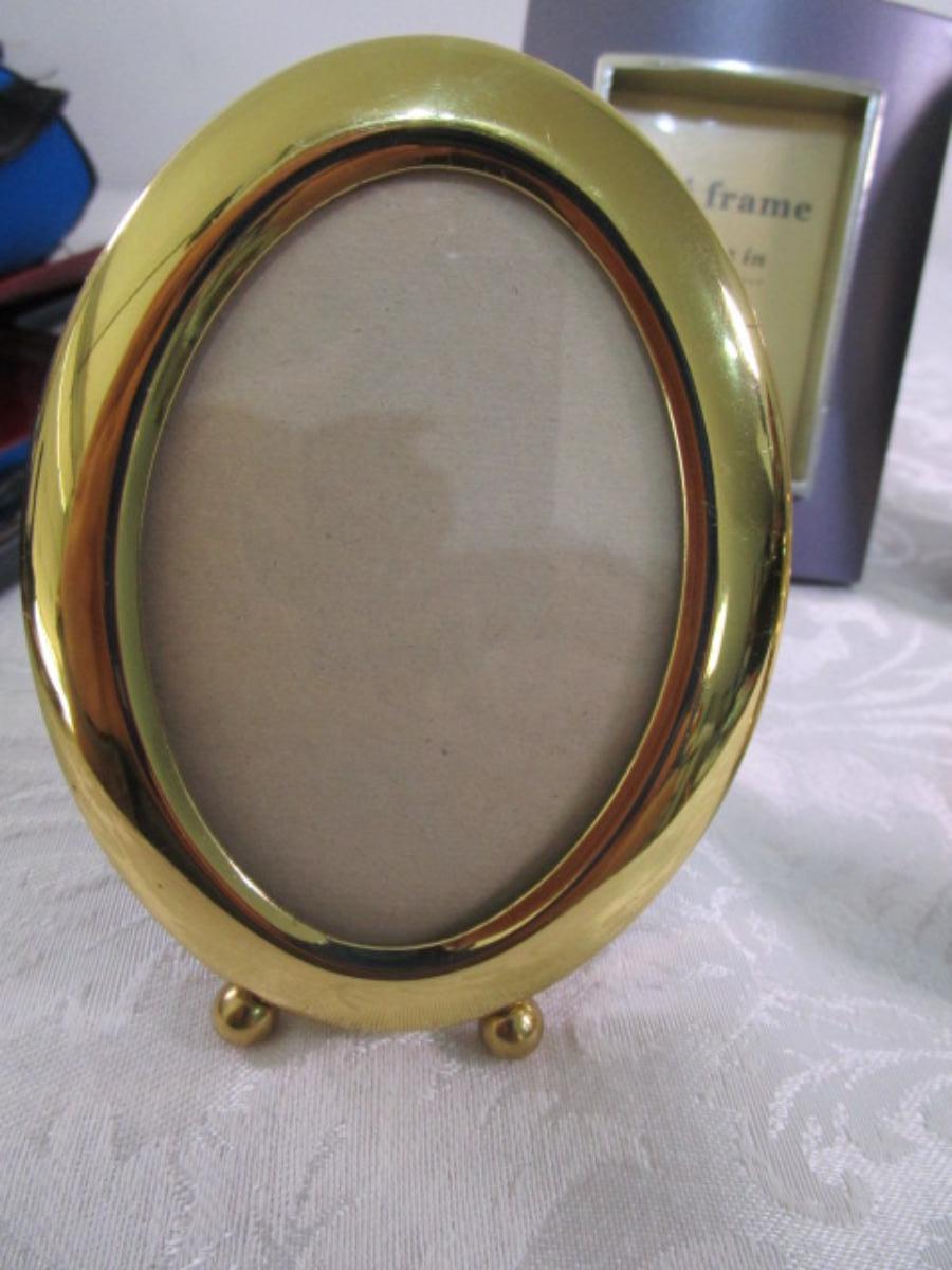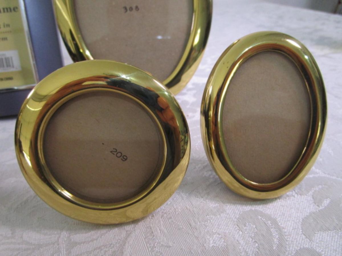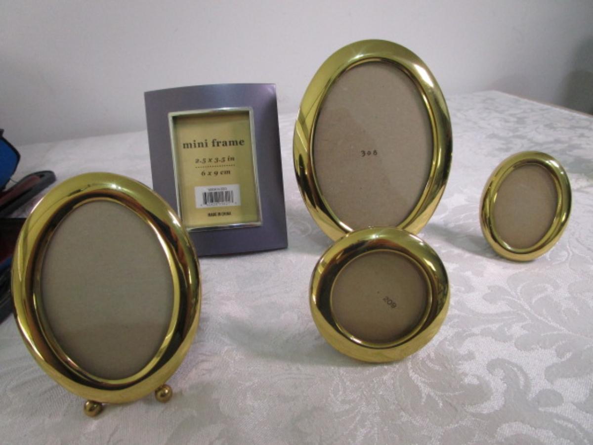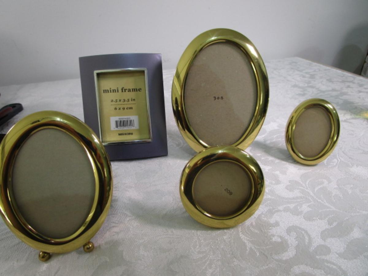 Vintage set of 4 brass oval picture frames & 1 rectangular picture frame