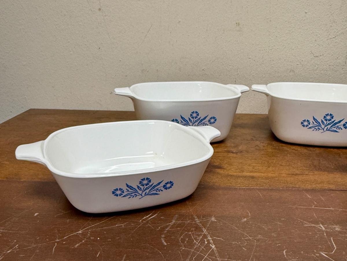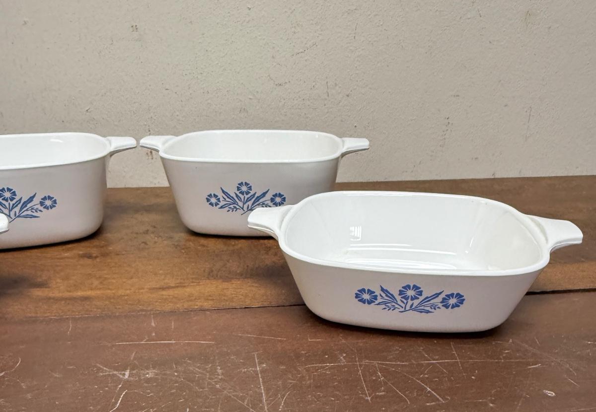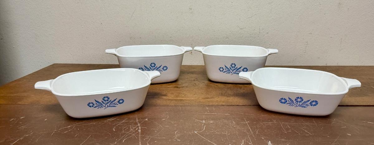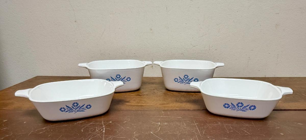 Vintage Set of 4 Corning Ware Blue Cornflower Ceramic Baking Pans