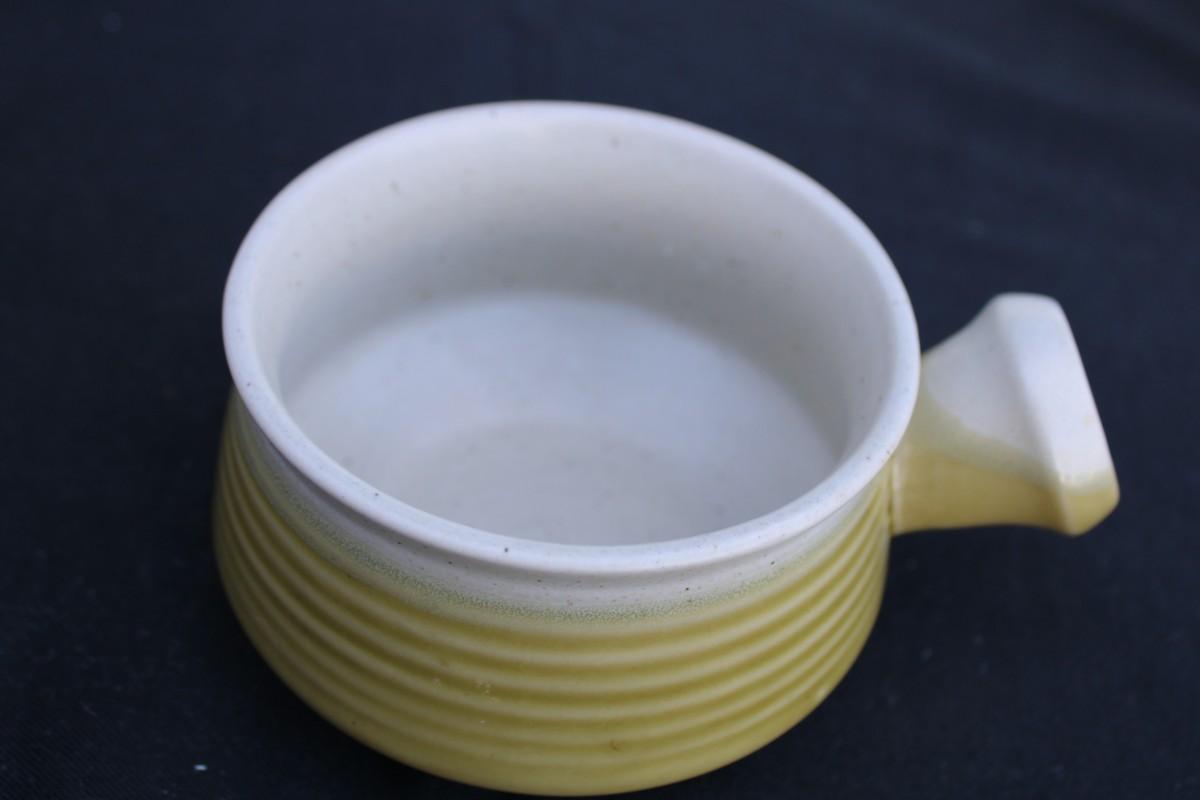 Vintage set of 4 French Onion Soup Bowls.  Modern Mid Century Dishes.  Genuine Stoneware.  3 matching, one a lighter color.