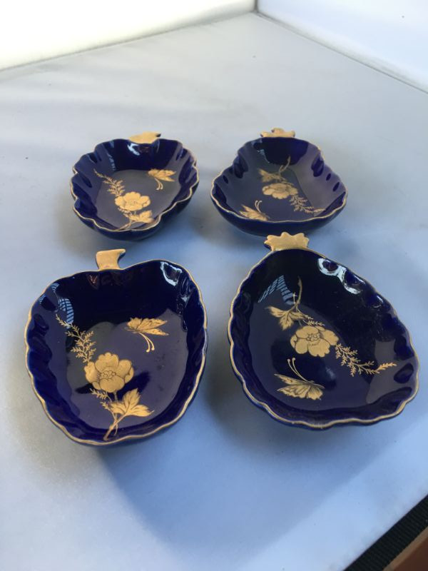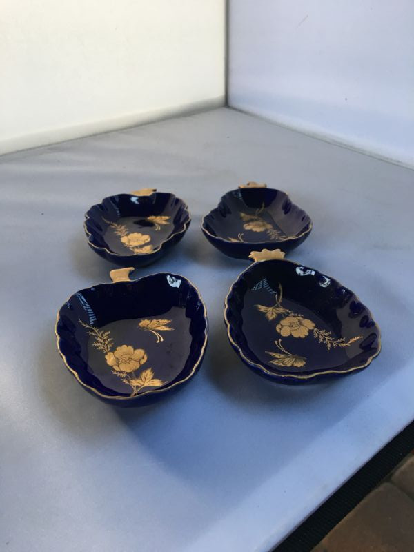 Vintage set of 4 gilded Limoges cobalt blue dishes