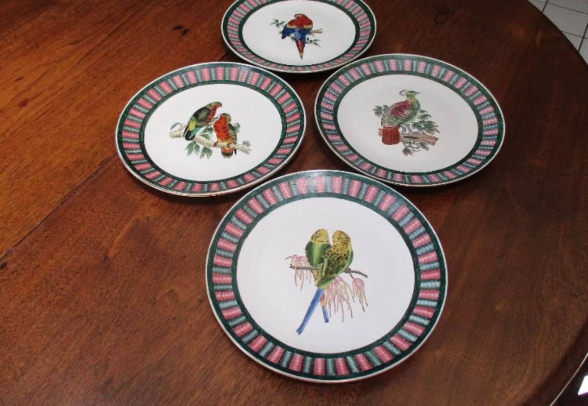 Vintage set of 4 oriental accent bird plates