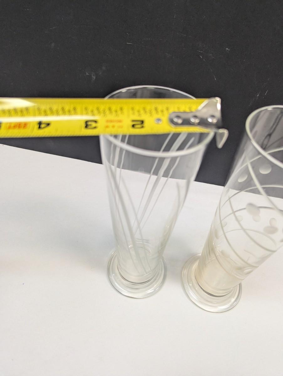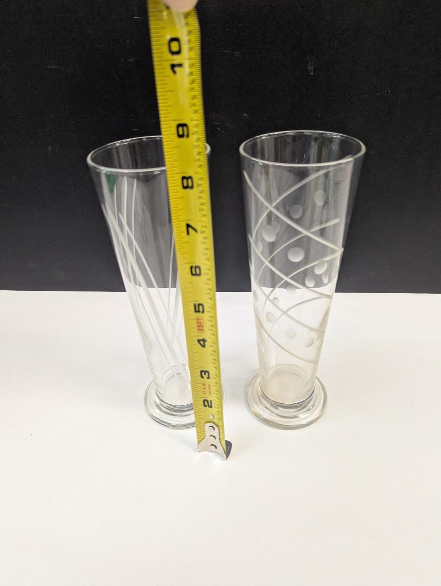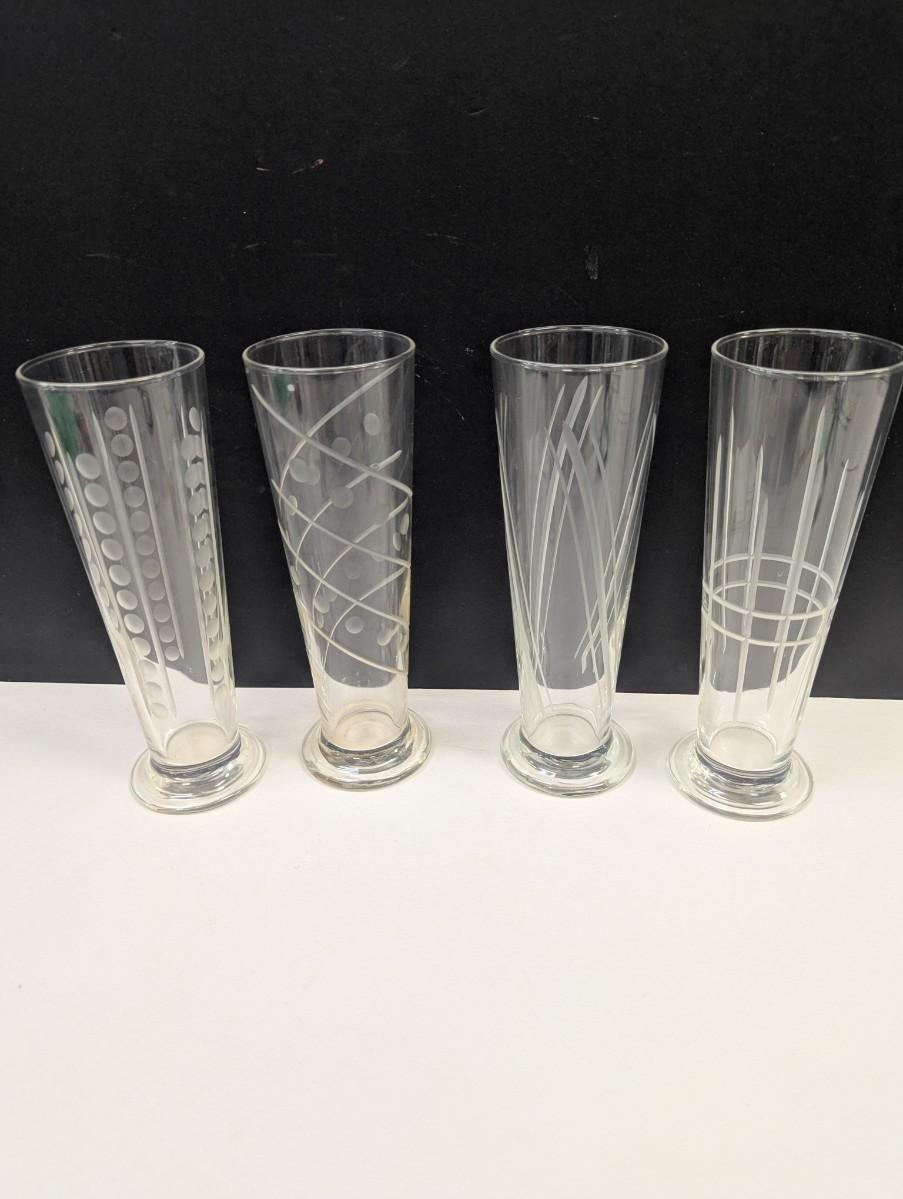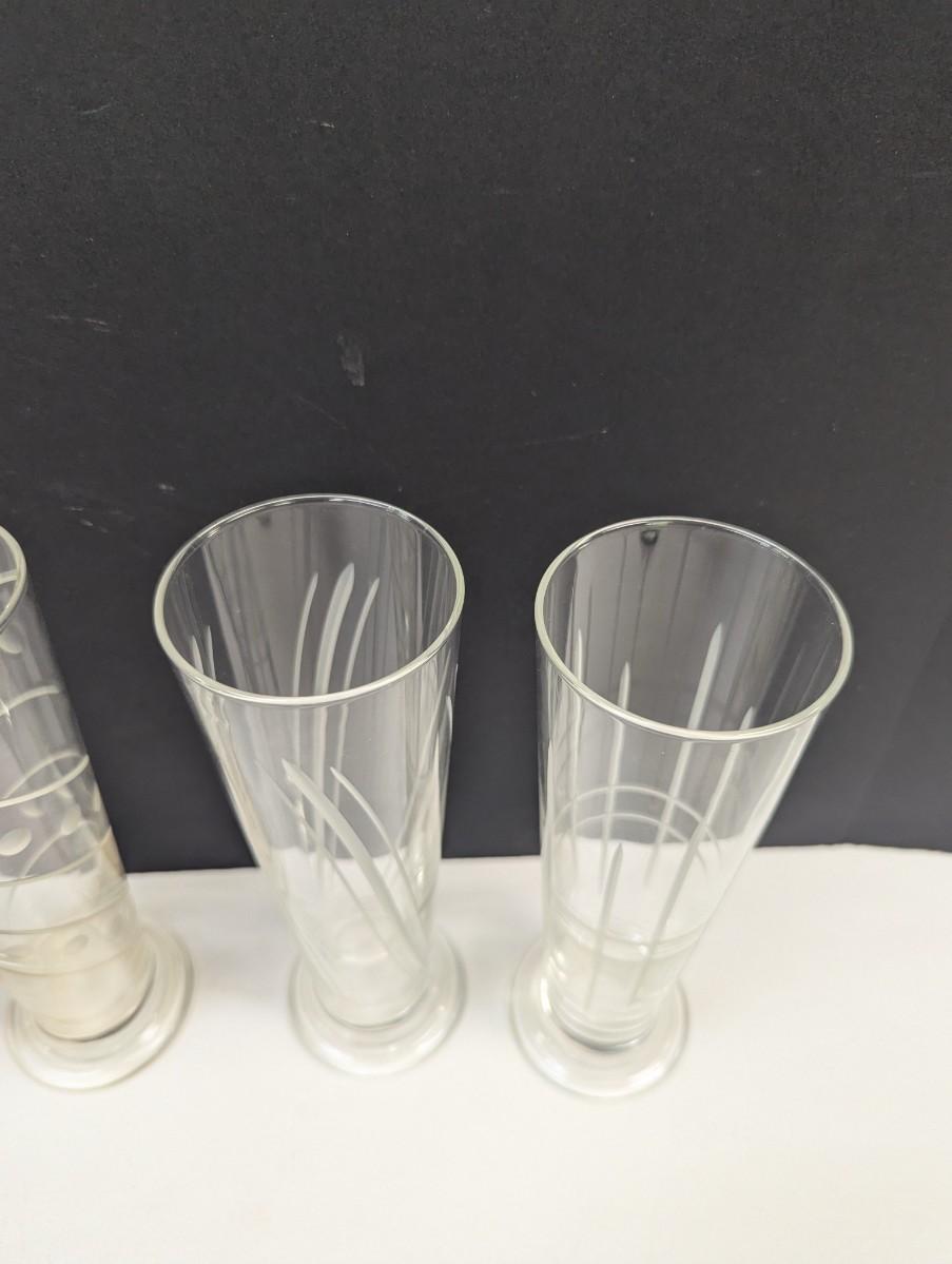 Vintage Set Of 4 Pilsner Footed Etched Glasses Approx 8 1/4" Tall