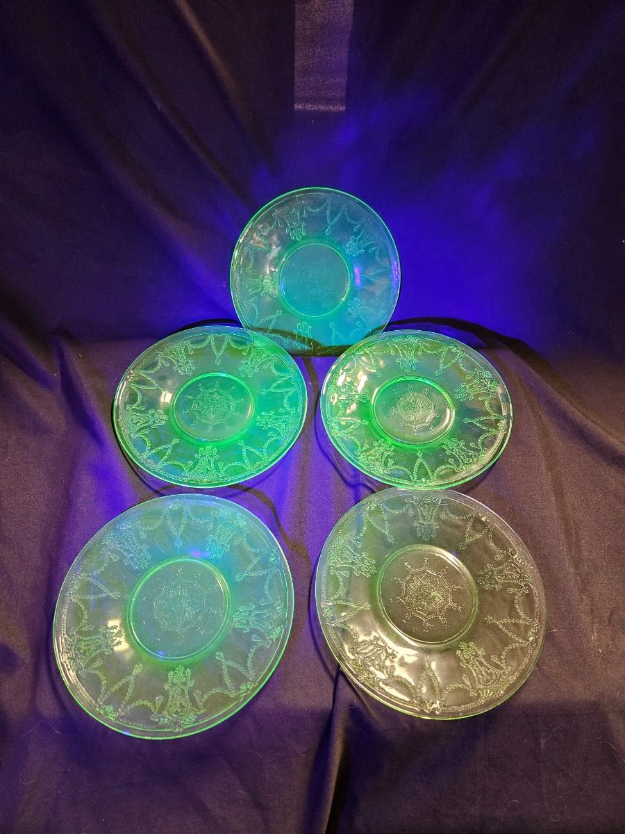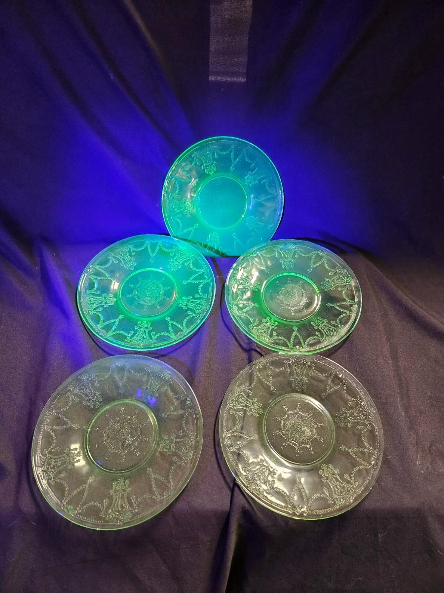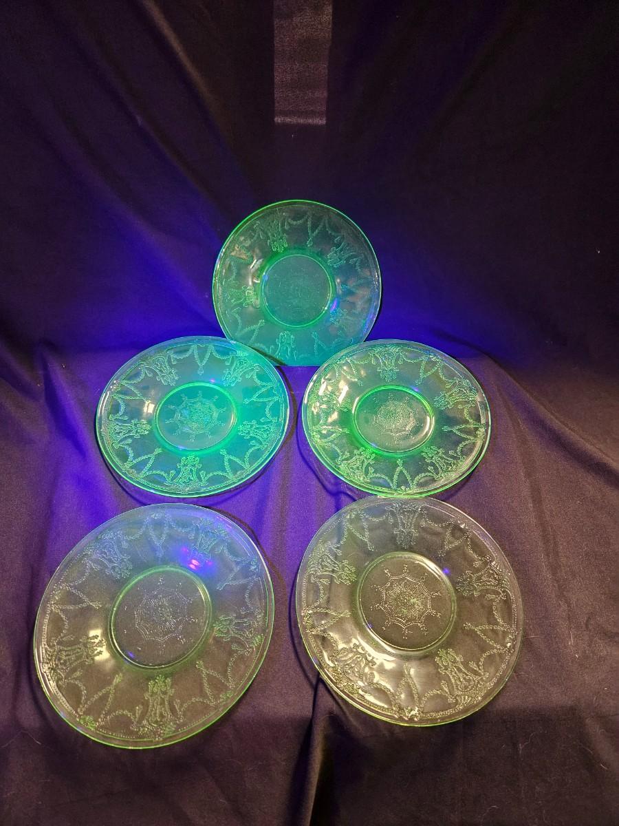 Vintage Set of 5 Uranium Depression Green Ballerina Princess Saucers