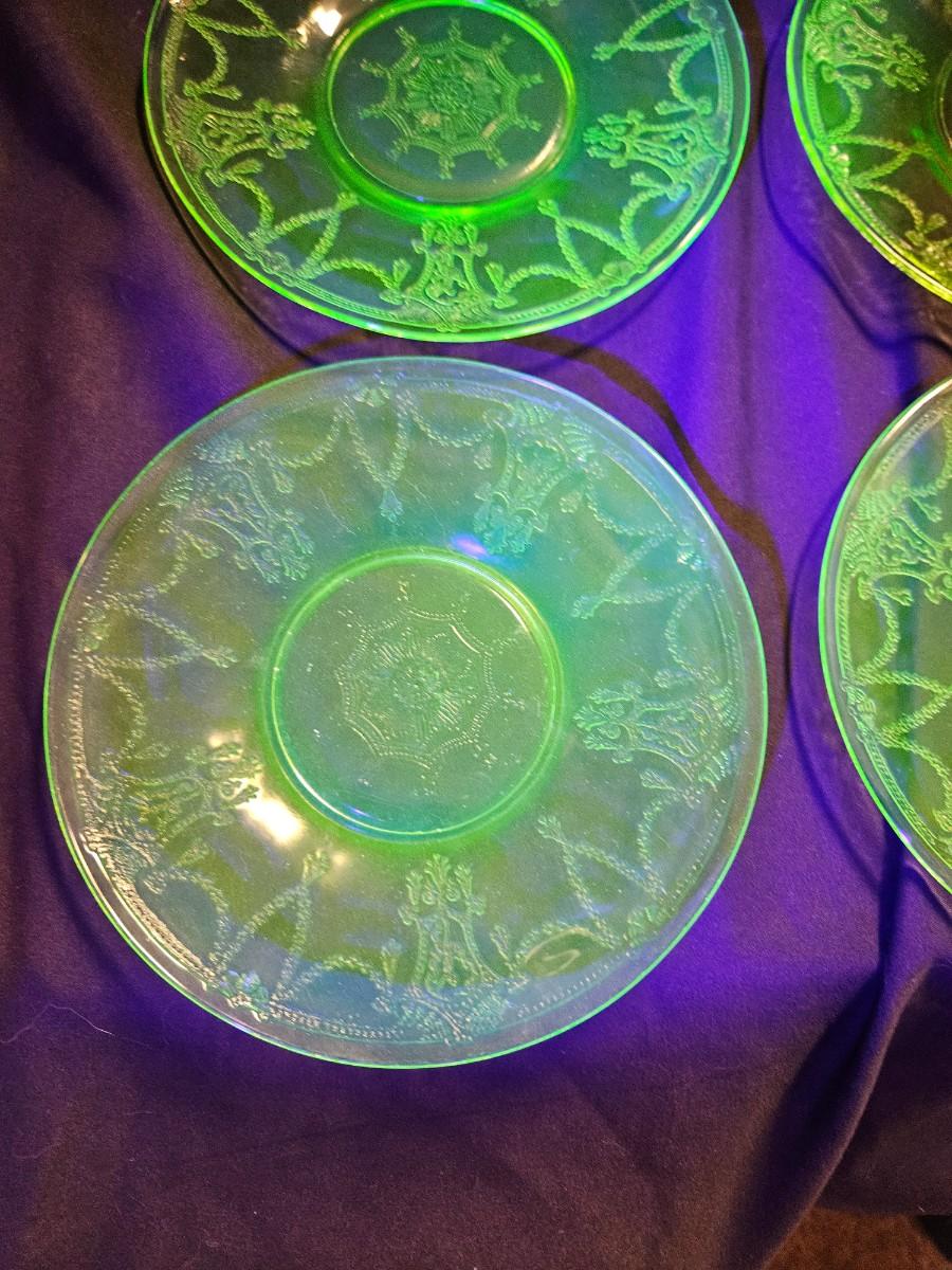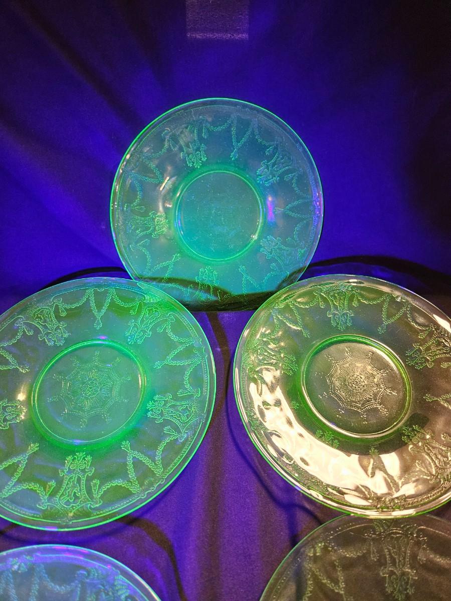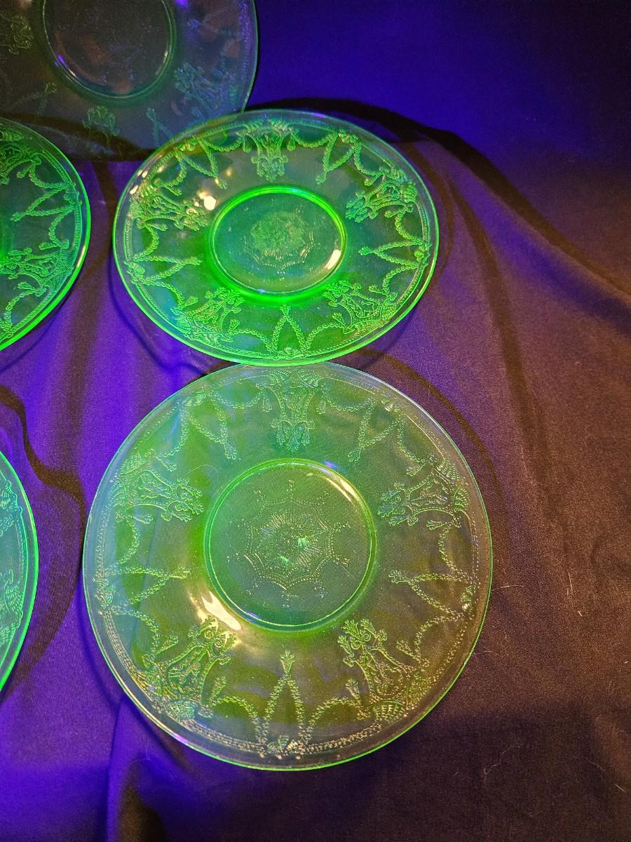 Vintage Set of 5 Uranium Depression Green Ballerina Princess Saucers
